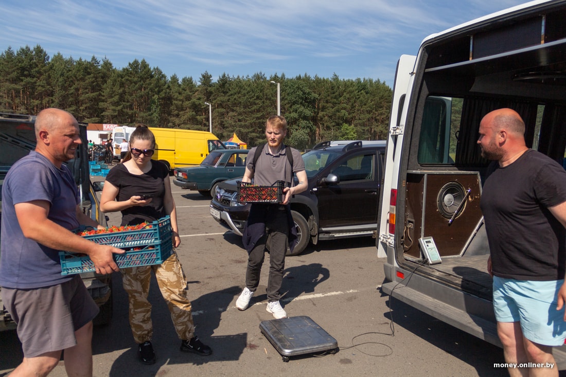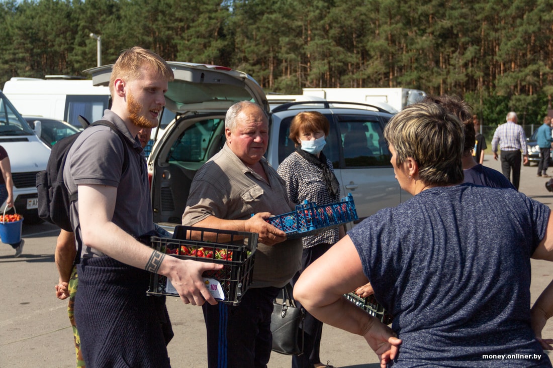 — Это первые выходные, когда перекупы массово съезжаются, ведь клубника только-только началась. Единственная сложность — найти сбыт. Риска никакого нет: если не продашь — варенье будешь есть целый год или продавать его. Скинулись по 200 рублей с человека (150 на клубнику, 50 на топливо) — заработаем минимум в два раза больше. На Комаровке большое предложение, поэтому там цена падает, а вот в Дзержинске клубники дешевле 11 рублей нет. У кого холодильники — везут на Витебск, там маржа 8 рублей, но нужны объемы, — рассказывают парни.