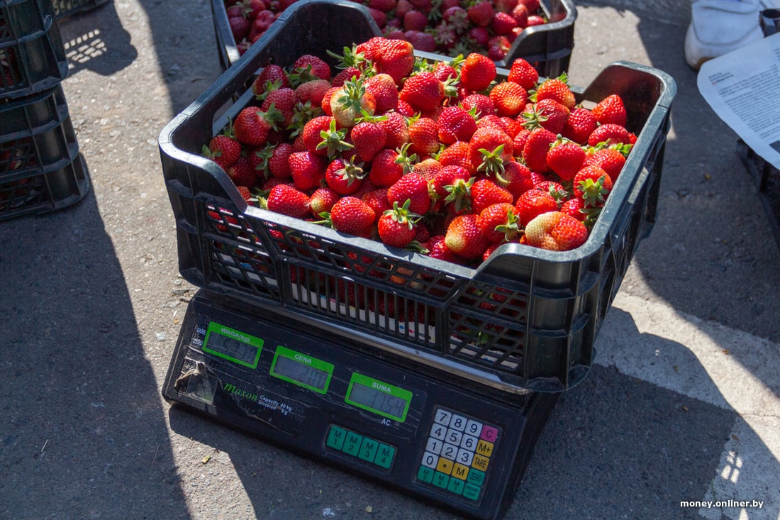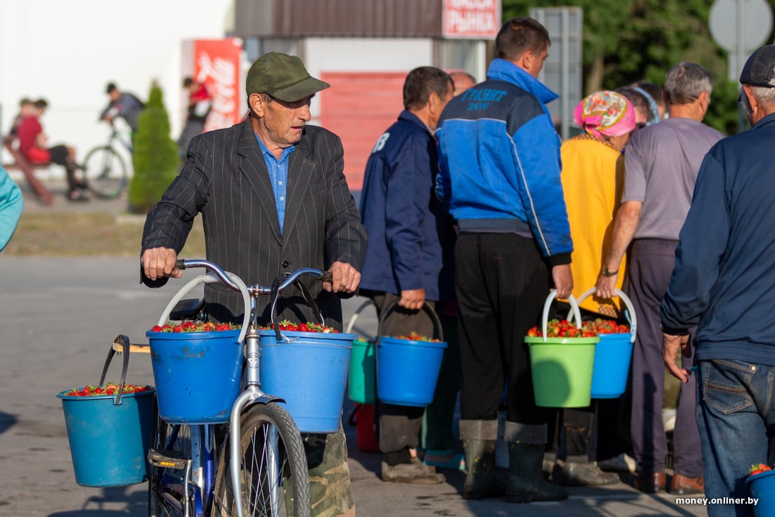 — Вот вы сейчас напишете, что клубника по 1,5 рубля продается, а в Минске потом люди не хотят брать. Так это вы просто в день такой попали, тут вчера до 7 рублей отдавали за килограмм. Посмотрите, у всех есть машины, но никто не хочет ехать на рынки. Я заехал вчера раз — администрация выгнала, и куда ты ее вечером денешь, 200—300 килограмм? А если и берешь место, то ставят в самый край, а не на центральный ряд, где бананы и мандарины круглый год лежат. Так я и на место не наторгую. Во время клубничного сезона нужно убирать эти бананы с рынков! — рассуждает мужчина.