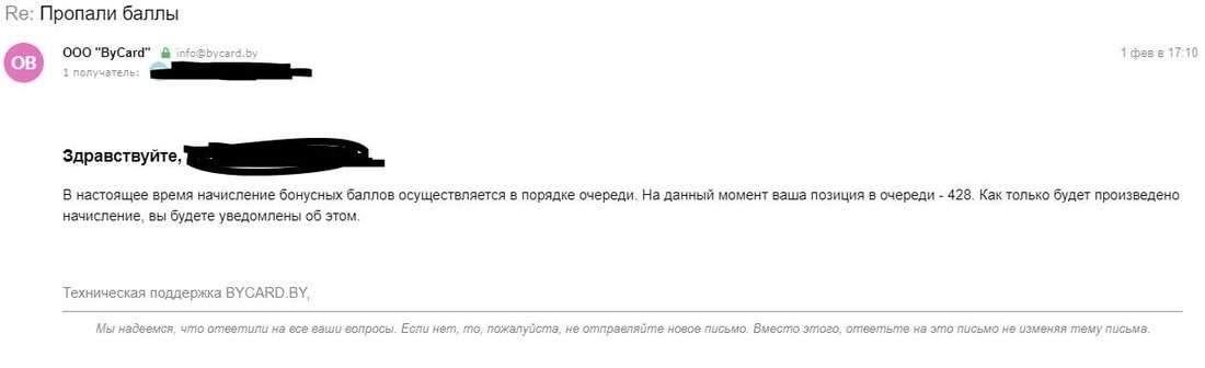— В группе во «ВКонтакте» я узнал, что эта проблема глобальная и возникла примерно в ноябре 2020 года. С тех пор у меня пропал доступ в личный кабинет и нет возможности воспользоваться баллами либо забрать деньги. Я вел переписку с ByCard, в последний раз писал им 21 июня, но толку от этого никакого.