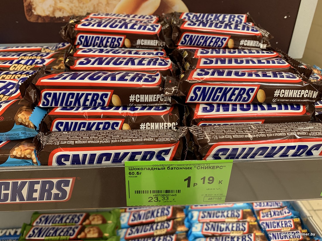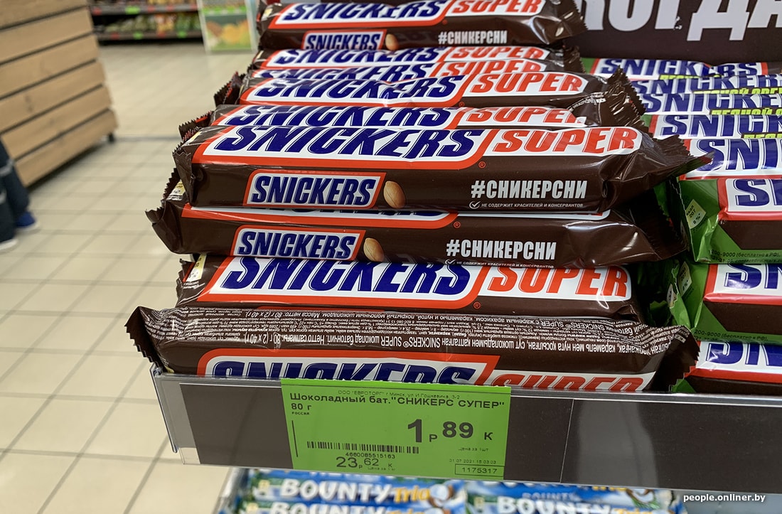 Что осталось? Сникерсы! Акции я не нашел, зато обнаружил необычный факт: маленький сникерс стоит дешевле большого (хотя логика утверждала обратное).