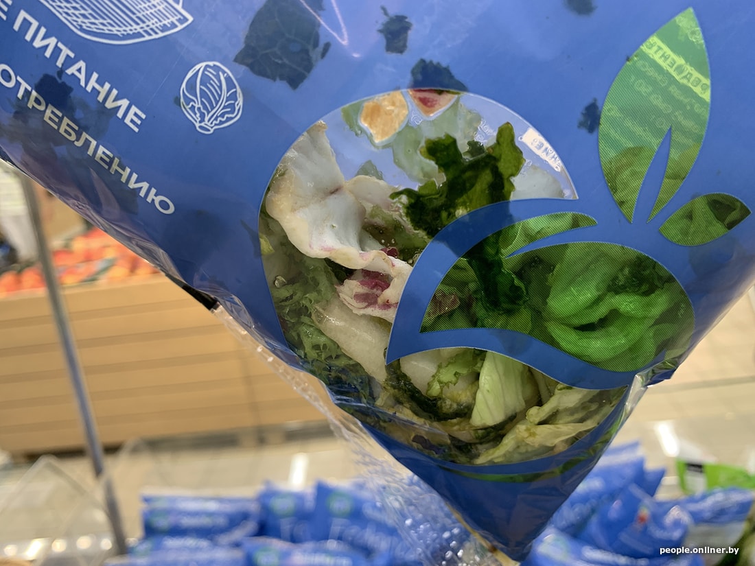Перехожу в отдел с фруктами и овощами. Тут грустно. По крайней мере, что касается моих нужд. Вот такой салат предлагают на скидке. Спасибо.