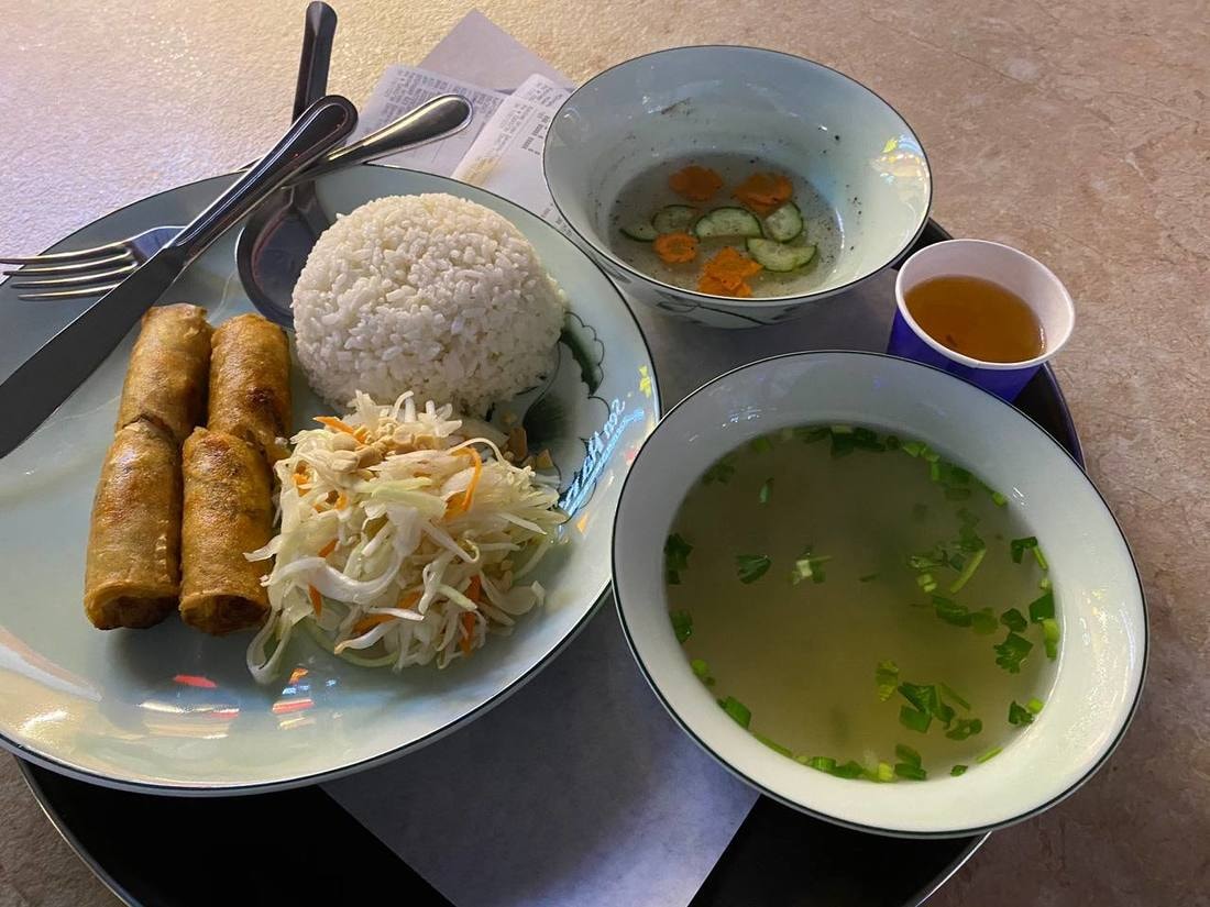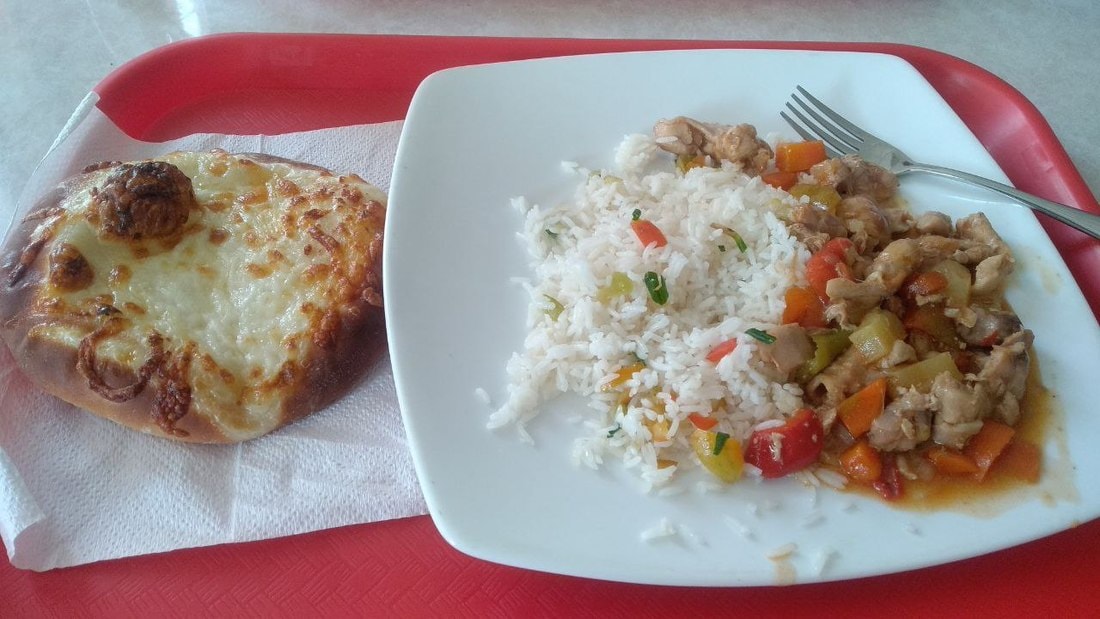 — Обычно мы обедаем в кофейне Yummy. У кофейни есть чат в Telegram, где можно заранее заказать, что ты будешь есть завтра. Цены на обеды обычно варьируются от 4,5 до 5,5 рубля. Обычно к обеду я беру кофе (это еще 2,5 рубля) или большой стакан фруктового чая (примерно 4 рубля), и тогда за обед выходит 7—9 рублей.