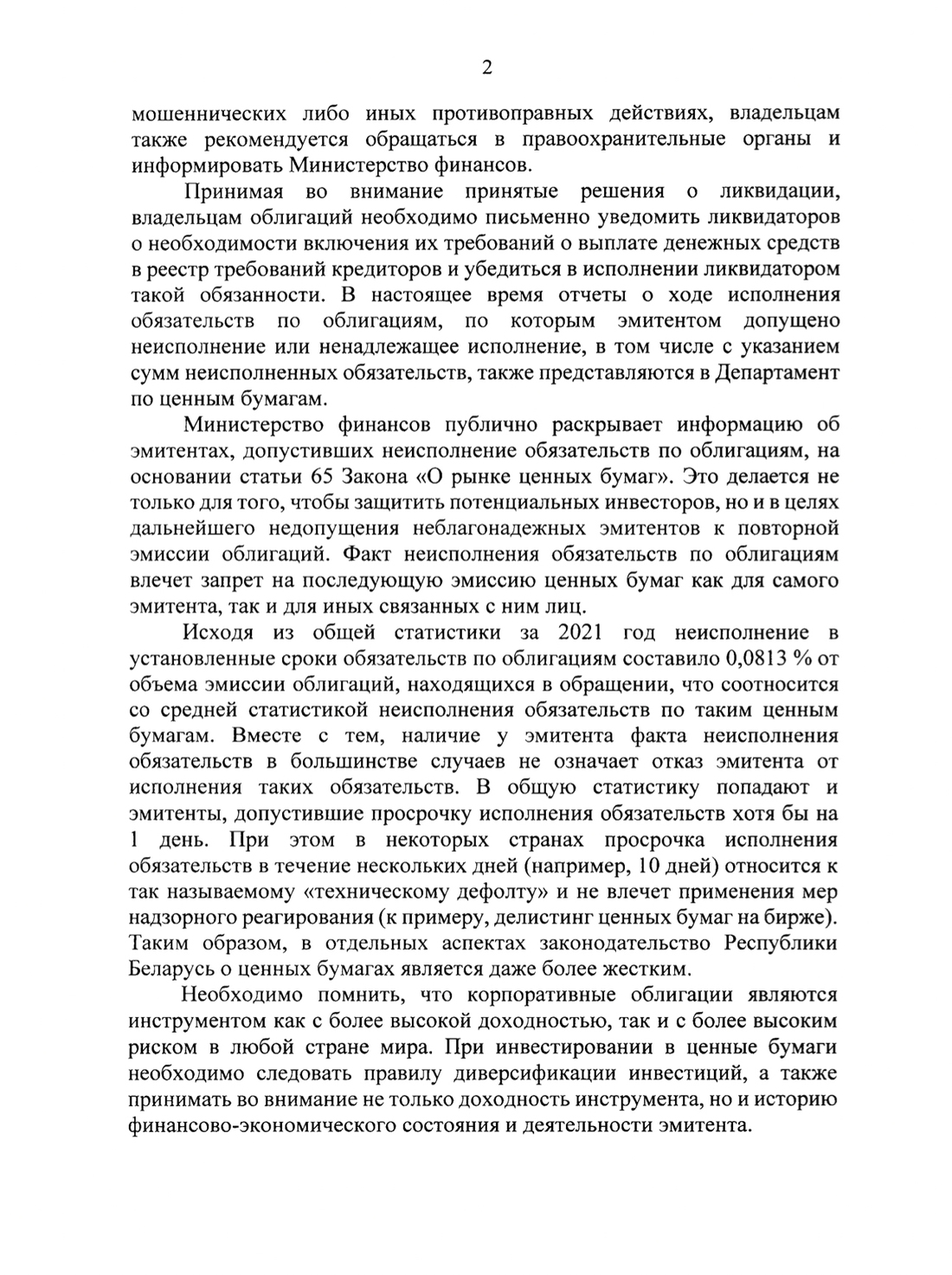 Мы обратились за комментарием насчет этой ситуации в Департамент по ценным бумагам Минфина. А также поинтересовались, планируются ли какие-то изменения с учетом того, что в прошлом году произошло 10 дефолтов по облигациям белорусских предприятий, а до этого были лишь единичные случаи.