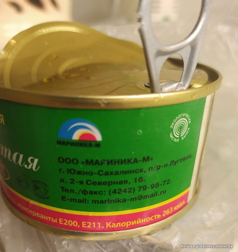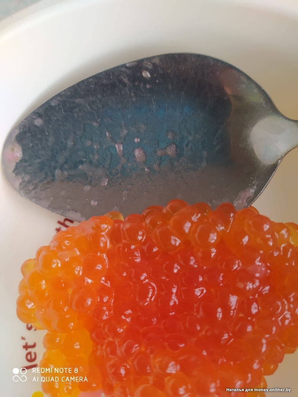 Наш читатель Владимир тоже купил банку с надписью «Икра зернистая лососевая» не у спекулянтов, а в легальном магазине «Ваш выбор» на Игуменском тракте. Точка относится к ТД «Восточный». Банка очень похожа на ту, что была в прошлой серии, но есть мелкие различия. Возможно, месили в одном подвале под Смоленском. Стоила 14,95 руб. (в гомельском магазине было 15,19) за 140 г (так написано на банке, на самом деле меньше). На жести выдавлено слово «кета» (в гомельском варианте была «чавыча»). Производителем значится наше любимое ООО «Персей» (фирма с таким названием ликвидирована в 2019-м). Дата изготовления — 30.09.2021.