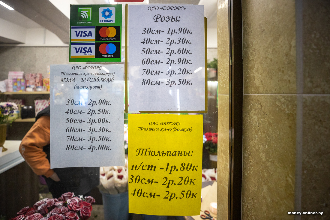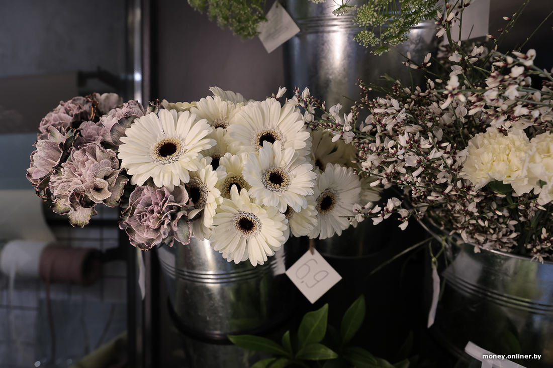 — Герберы у нас даже подешевели, но их осталось мало. Они из Голландии, это остатки роскоши (на витрине две штуки. — Прим. Onlíner). Мы слышали, что поставок цветов из Голландии пока не будет. Ходят слухи, что фуры, которые шли через Украину, перестанут ездить к нам. Это рассказали знакомые из коммерческих магазинов.