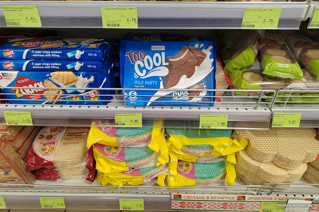 В Украине производят часть бисквитных пирожных «Барни», с ними тоже все в порядке. Можно закупиться вафельными листами для тортов (но тогда и белорусской сгущенкой тоже) и халвой.