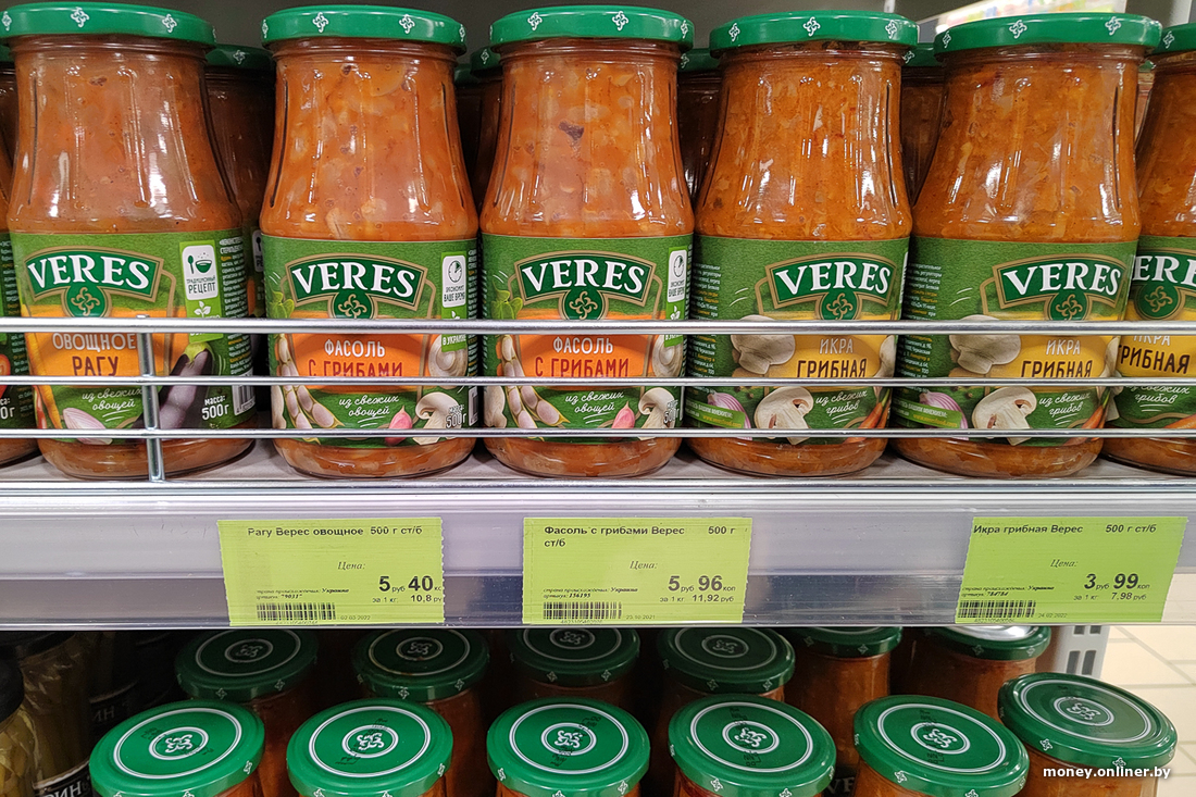 Все в порядке с консервацией «Верес» — горошек, кукуруза, фасоль, рагу, грибная икра и другие похожие штуки в избытке.