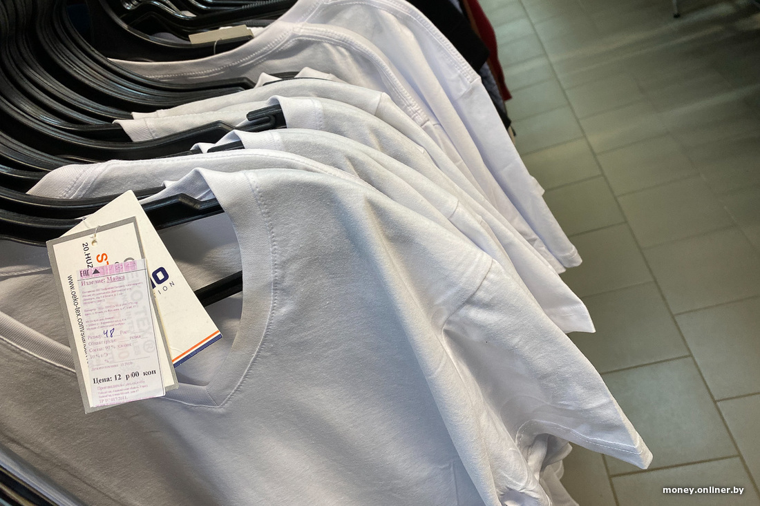 Кроссовки — меньше чем за 30 рублей. Белые футболки — по 12. Не на всех товарах есть информация о составе, но при таких ценах, наверное, и неприлично об этом спрашивать: слишком дешево, чтобы предъявлять претензии из-за отсутствия бирок.