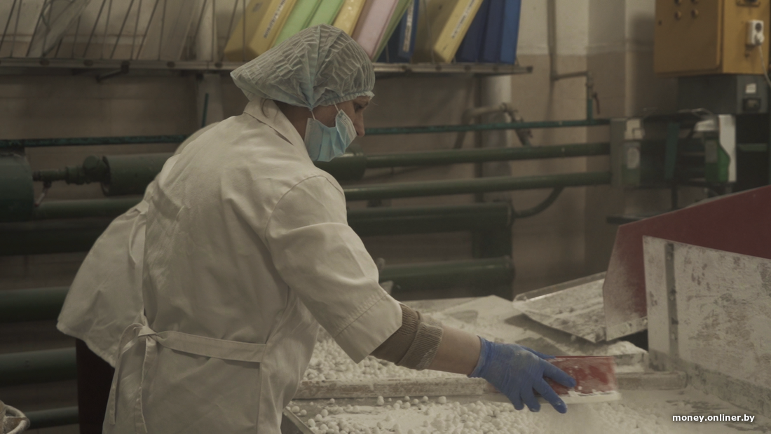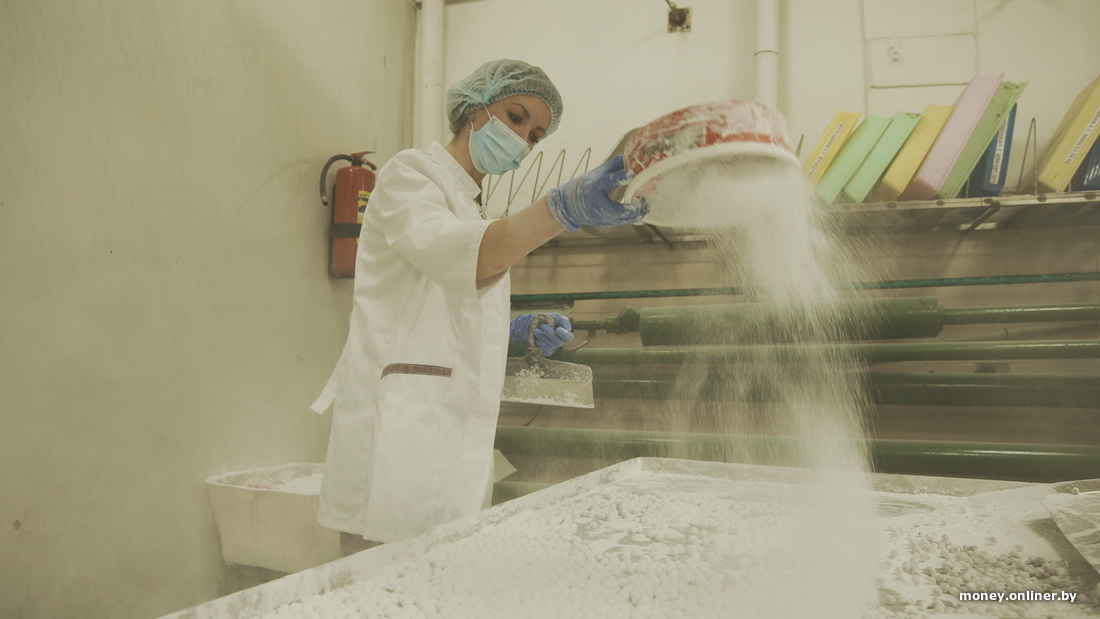 — Мы единственные в Беларуси, кто производит такой продукт в промышленных масштабах, — говорит Василий. — Почему не занимается никто другой? Знаете, есть ролики на YouTube, как приготовить клюкву в домашних условиях. Там девочка с красивым фартуком берет тарелочку клюквы, какой-то яичный желток, белок. Раз-раз, тяп-ляп — и вроде получается тарелка красивой клюквы в сахаре. Но эта тарелочка граммов двести. А когда у тебя в смену делается 800 килограммов драже, то это немного другие технологии.