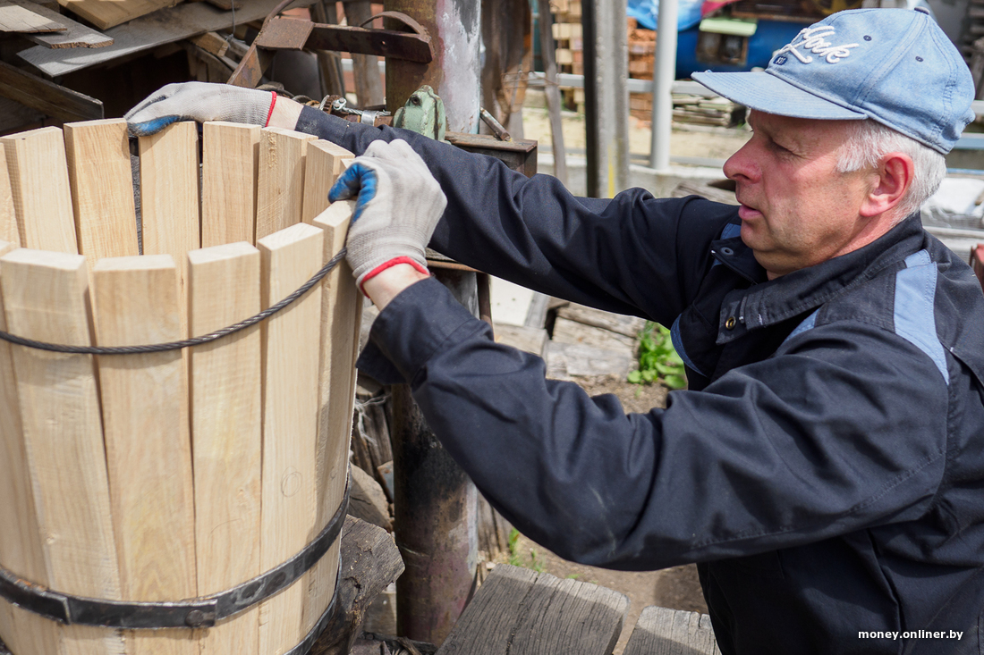 Работают бондари в основном на белорусский рынок — это заказчики из Минска и областных городов. Спрашиваем, не было ли идеи заняться раскруткой бренда и продавать бочки гораздо дороже обеспеченным клиентам за границу? Бондари отвечают: повышать стоимость уже некуда — это адекватная цена за изделия из белорусского дуба.