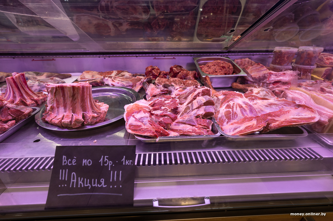 Если хотите чего-то попроще — вот говядина, которую так сложно найти в магазинах в последние месяцы. Стоит около 20—30 рублей за килограмм. За прилавками стоят нанятые продавцы. Откуда мясо? Да отовсюду: «ипэшник» скупает у населения и везет сюда. То, что население как физлица само не продает мясо на рынке — это не очень хорошо. Почему? На этот вопрос чуть ниже ответит директор «Валерьяново».