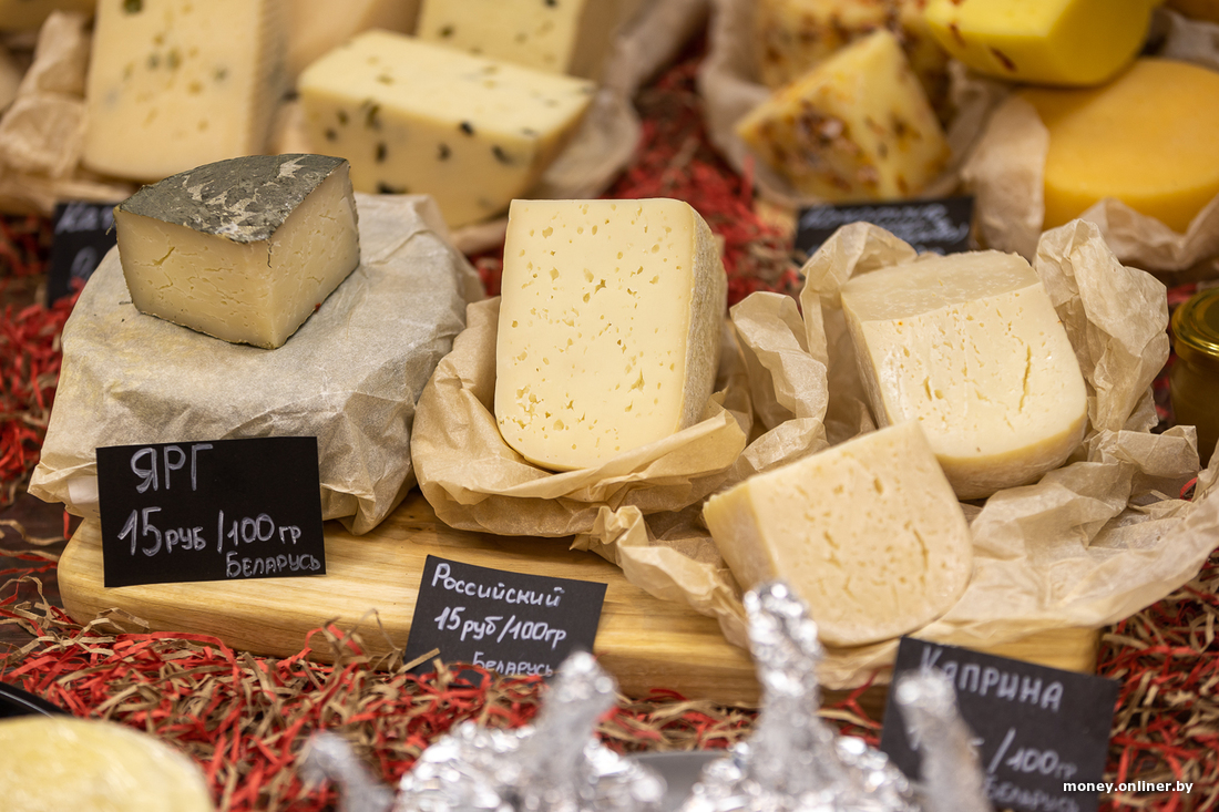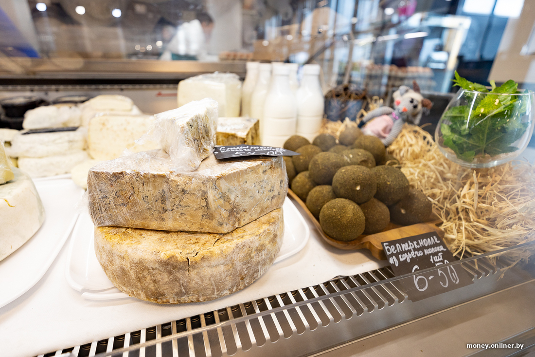 Белорусский сыр по 50 рублей еще не самый дорогой. Есть и за 150 из Докшицкого района, на ценниках указывается цена за 100 граммов. Вот так: одни говорят, что в деревне нечем заняться, нет ни работы, ни зарплаты. Другие в деревне делают крафтовые сыры по цене в половину прожиточного минимума за 1 килограмм. Хит продаж — запеченный адыгейский сыр по 40 рублей за килограмм, похожий на сырник. Людям нравится.
