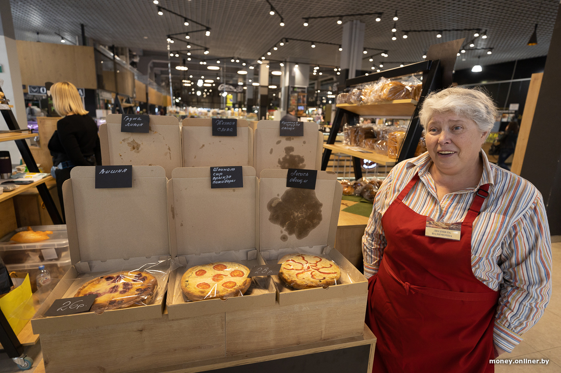 Встречаем Людмилу Вадимовну, которая продает хлеб по 5—6 рублей и пироги по 26—28. Женщина хвастается: об их пекарне в Заславле писала местная пресса. Так о них же писал и Onlíner в начале этого года. Увы, теперь пекарни нет: бизнес оказался нерентабельным и сложным.