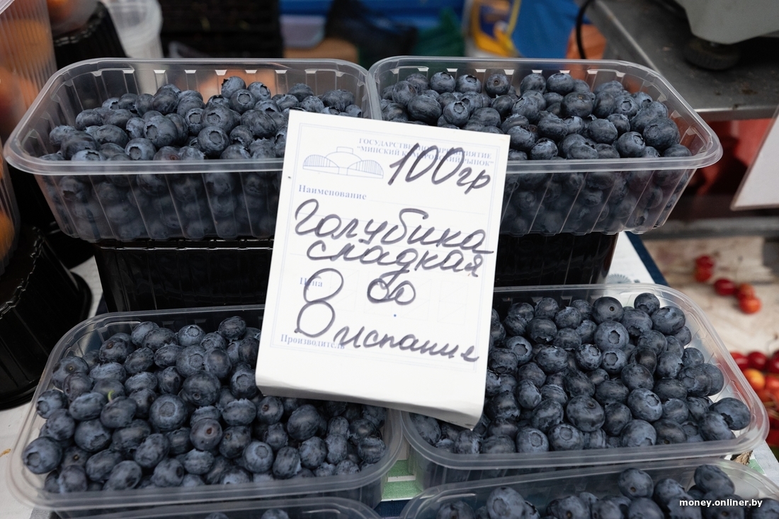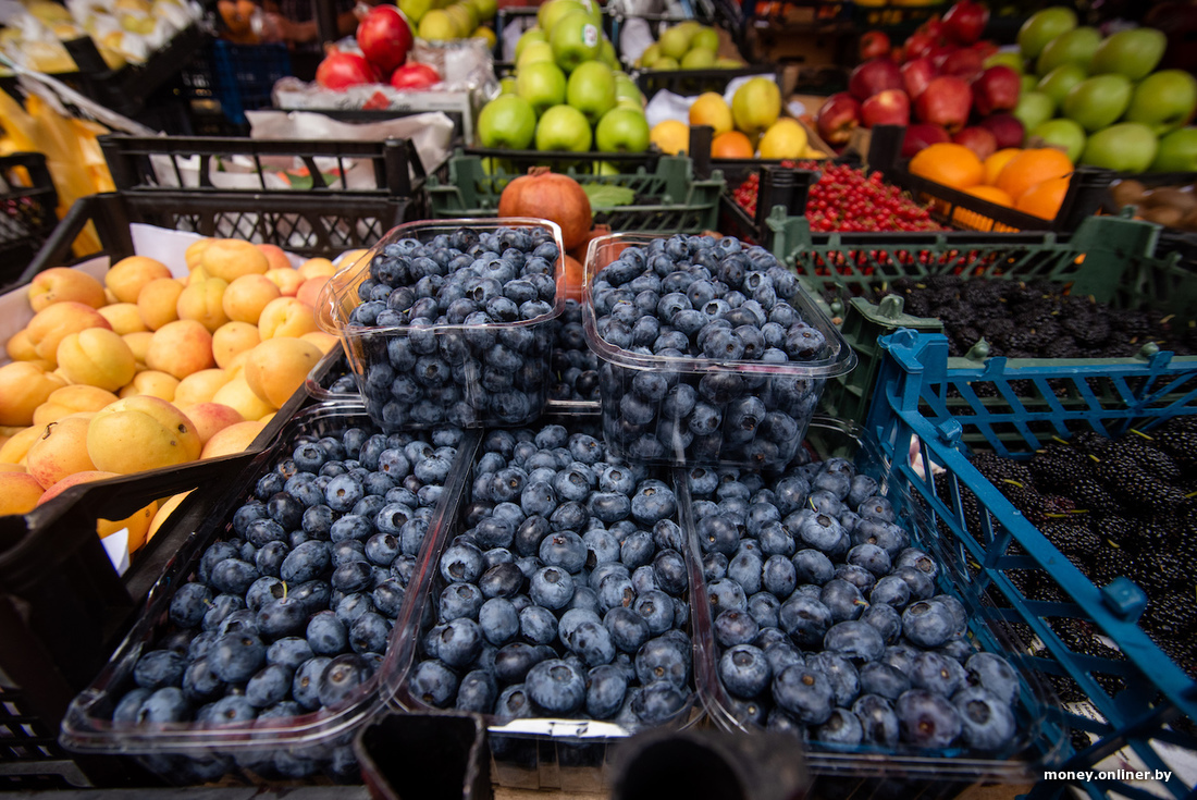 Комаровка по сравнению с тбилисским рынком чинна и чиста, особенно в будний день, когда здесь нет хаоса и все на работе. Продавцы спокойно и терпеливо отстаивают оплаченные арендные места и ждут своих покупателей. Сначала заходим на красочный сезонный рынок. Белорусская клубника сейчас стоит от 3,5 до 6 рублей за килограмм, молдавская черешня — от 9 до 14, испанская и перуанская голубика — от 8 (за 100 г). Малину нам найти не удалось.
