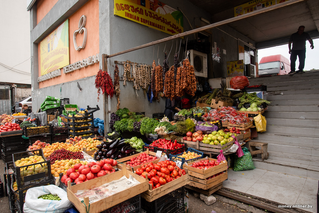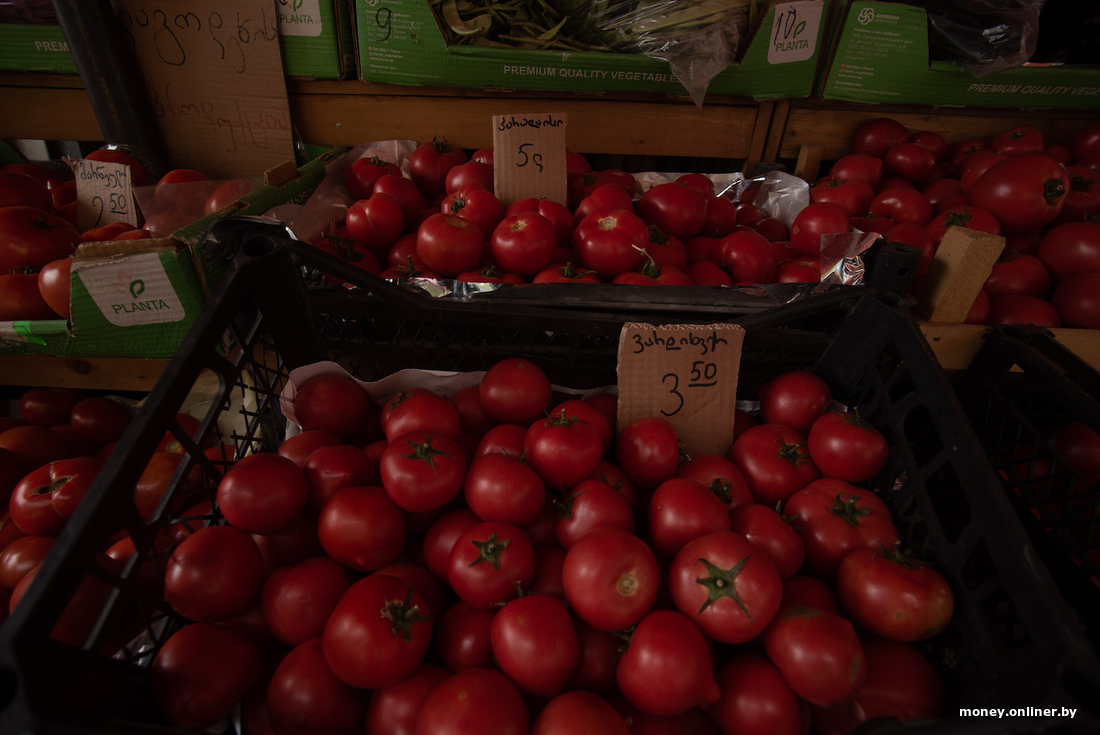 Что по овощам? Местные помидоры продают от 1,5 лари за килограмм, огурцы — от 1 лари. Здесь пользуются спросом грузинские огурцы, которые каждый попавший сюда белорус сначала посчитает кабачками. Они гладкие и светло-зеленые, действительно вкуснее привычных, но и дороже — от 3 лари за кило.