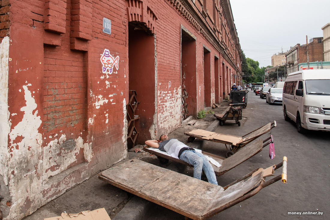 Утром после самых жарких скидок грузинский Дезертирский рынок тоже кишит покупателями, но вокруг разбросаны поддоны, покинуты некоторые места торговли: часть продавцов уже сбыли товар и спокойно отправились по своим делам. Практически все овоще-фруктовые прилавки забиты клубникой и черешней. Сезон тут начинается пораньше нашего, да и резко ставшие инстаграмными пионы уже давно отцвели.