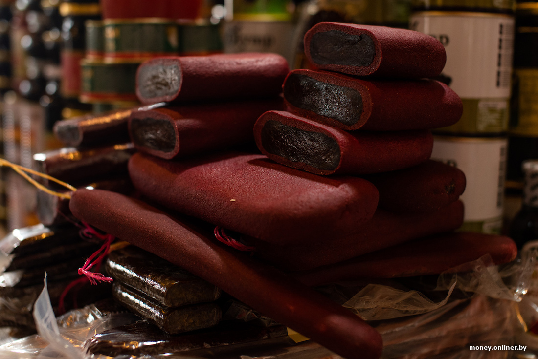 Специи здесь стоят фиксированно: 5 лари за большой пакет, 1 лари за маленький. Мед — 20 лари за килограмм. Грецкие орехи начинаются от 25 лари за кило и достигают 28. Кстати, их сюда поставляют, кроме прочих стран, и из Беларуси. Большая чурчхела для ценителей обойдется в 2 лари за штуку, маленькая — в 1,5. Дегустация бесплатна, пробуй хоть все и сразу.