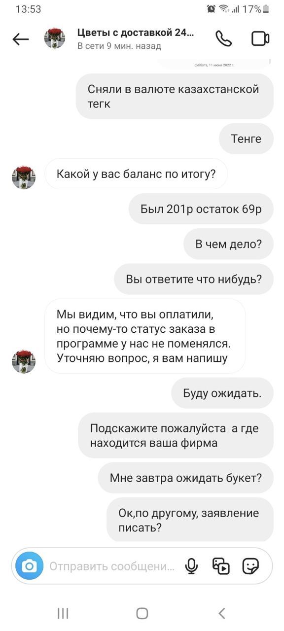 Читатели сообщают о «магазине» в Instagram с почти 40 тыс. подписчиков (это больше, чем у всех известных нам реальных продавцов букетов). Он должен доставлять цветы, а на самом деле забирает деньги с карты и замолкает. Называется flowerdres. Первые записи датированы маем 2022 года.