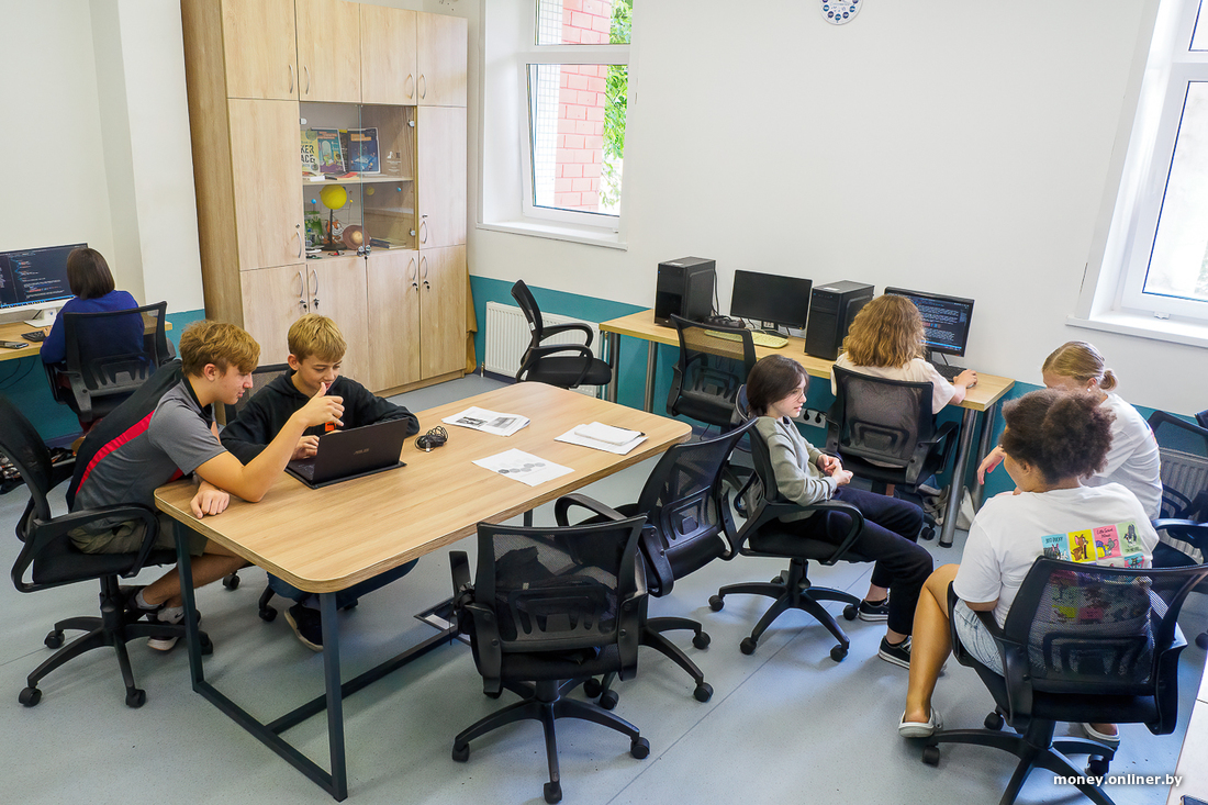 Новая школа открылась в районе Золотой Горки в Минске на 2,5 тыс. «квадратов» — это большое частное здание, где раньше был учебный центр. Обстановка в целом похожа на классы в государственной школе, только стульев и парт поменьше. Всего на пяти этажах здесь планируют разместить примерно 250 учеников.