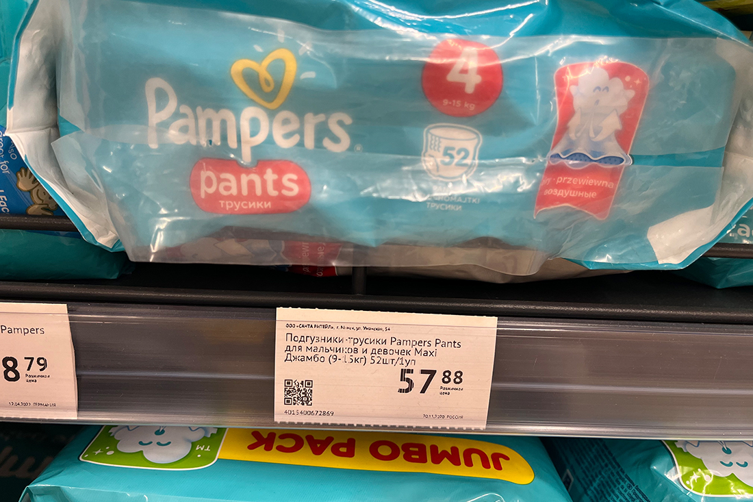 Из всех магазинов, которые мы обошли, лучшее предложение на трусики Pampers 4-го размера было в «Миле» — 0,91 р. за штуку (в пересчете).