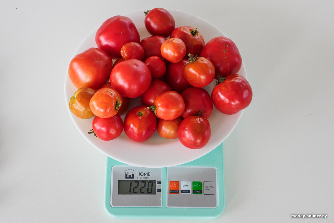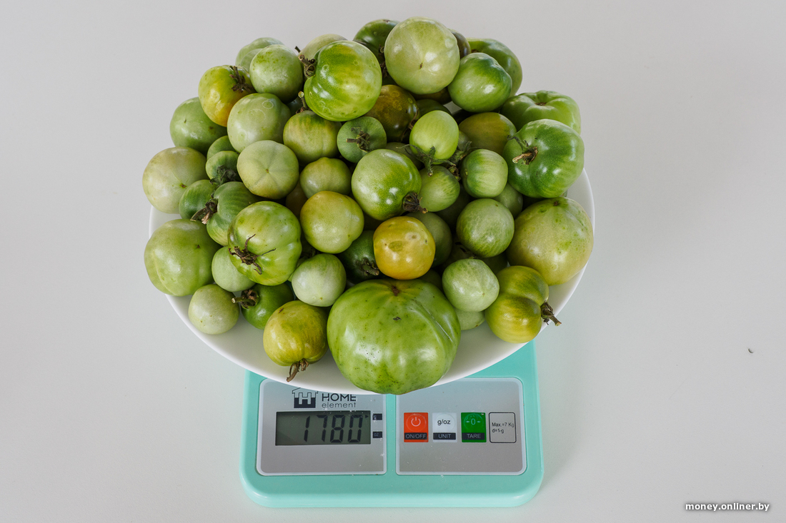 Ближе к осени томаты в супермаркетах стали стоить от 70 копеек до 1,51 рубля за килограмм. Мои помидоры пусть и некрупные, зато грунтовые и классные, так что посчитаю килограмм по 1 рублю. Итого мой доход на красных помидорах составил примерно 1,80 рубля. Зеленые помидоры также есть в продаже — по 1 рублю, их я увидела на Малиновском рынке. Итого оценим 1,78 килограмма моих зеленых помидоров в 1,80 рубля (округлим в бо́льшую сторону, чтобы поддержать мою самооценку).