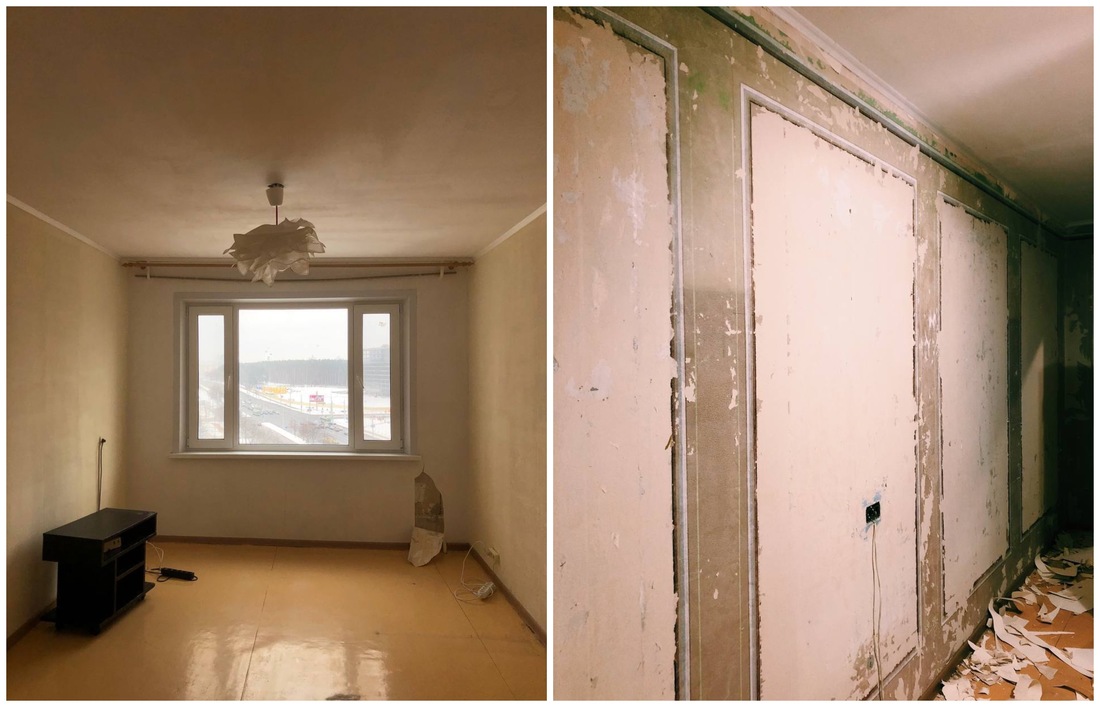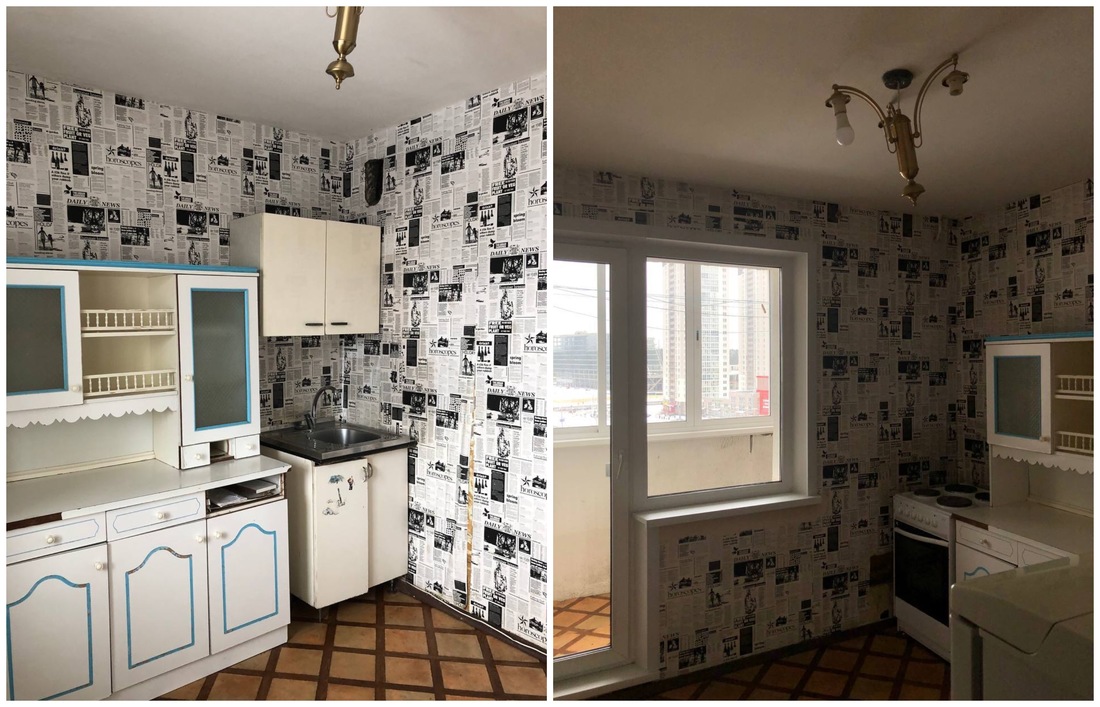 В кухне изначально стоял старый и неудобный советский буфет — таким раритетом не захотели пользоваться даже наши герои и сами разместили объявление о продаже. За символические 20 рублей быстро нашелся покупатель. Это, кстати, еще один лайфхак: если вещь очень габаритная и вам лень вывозить ее на свалку, попробуйте дать объявление. Возможно, кому-то она нужна даже в таком неприглядном виде.