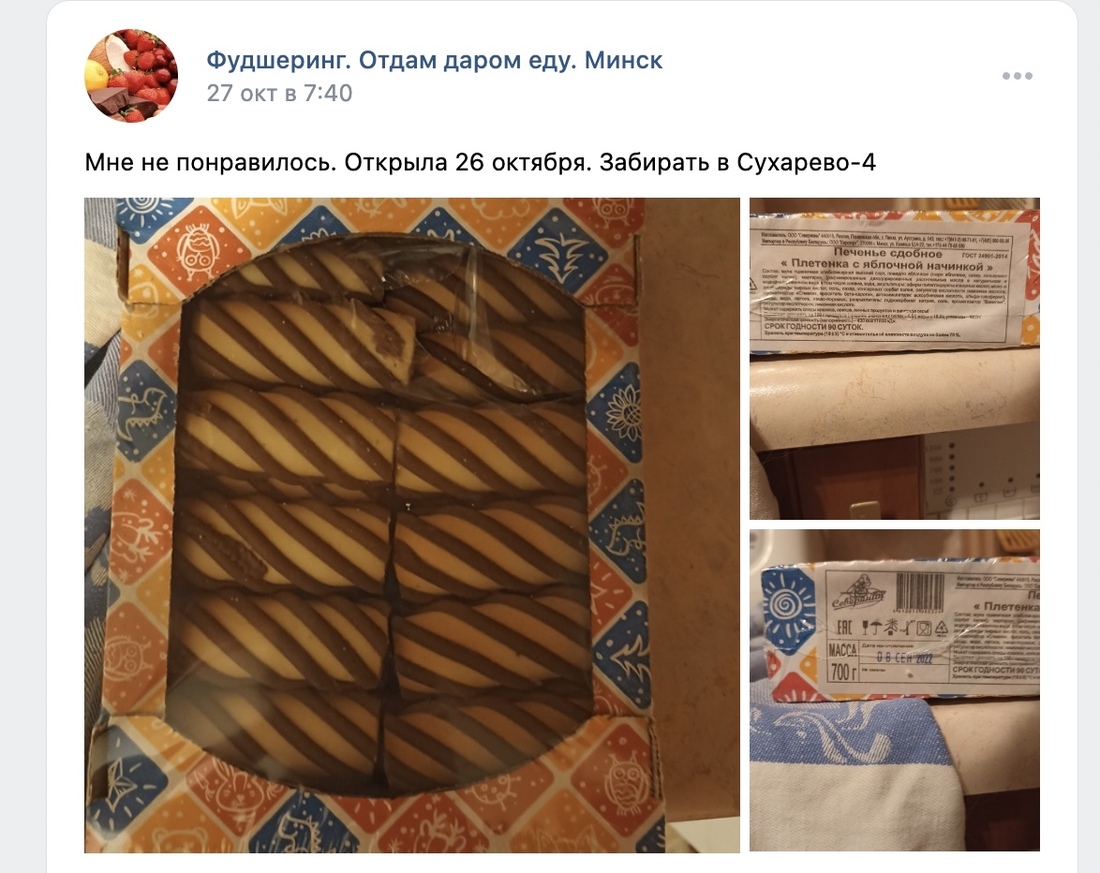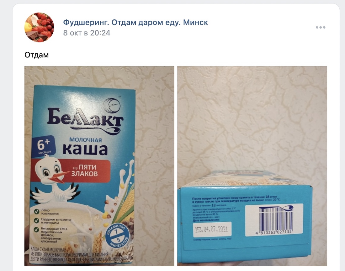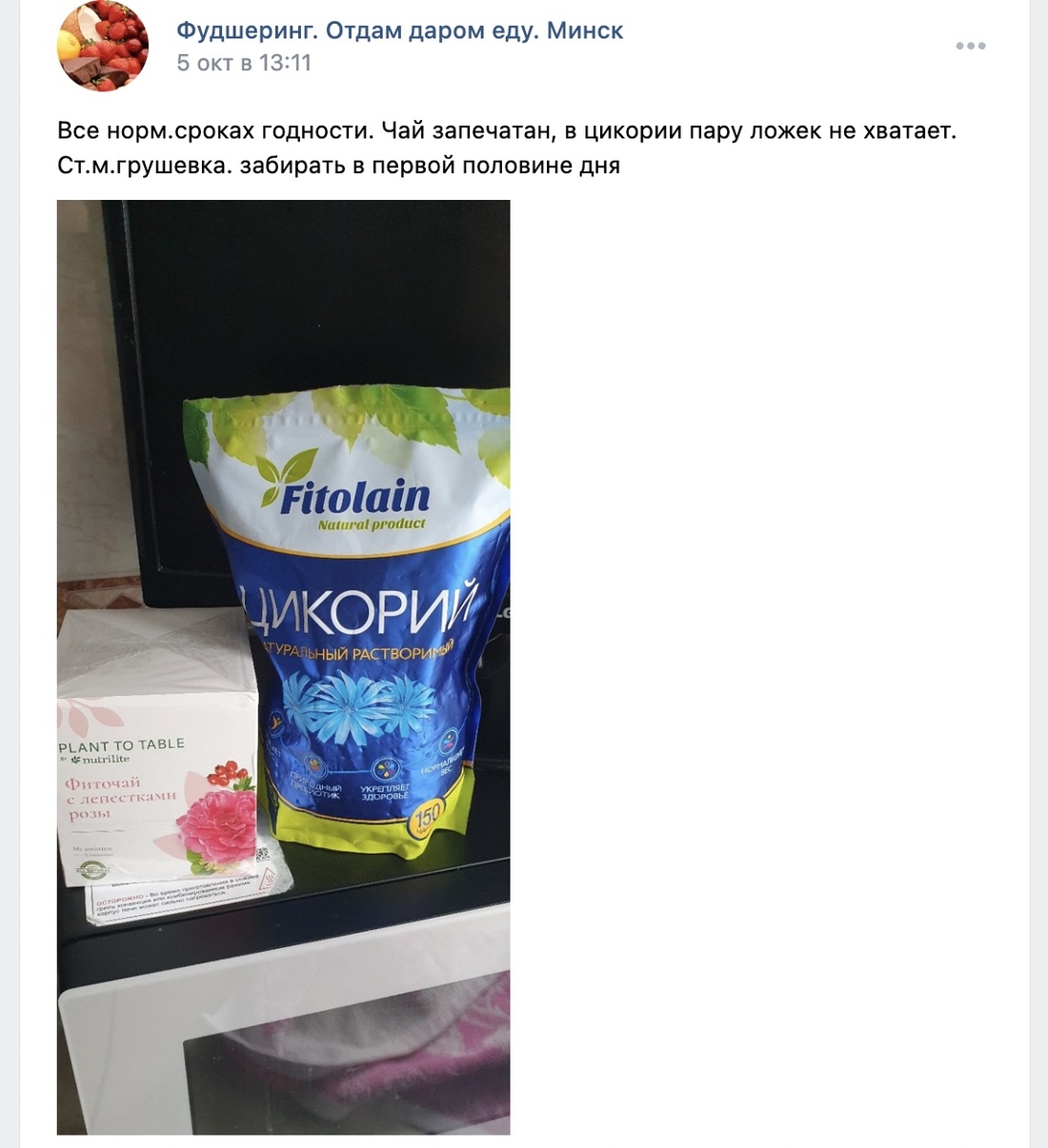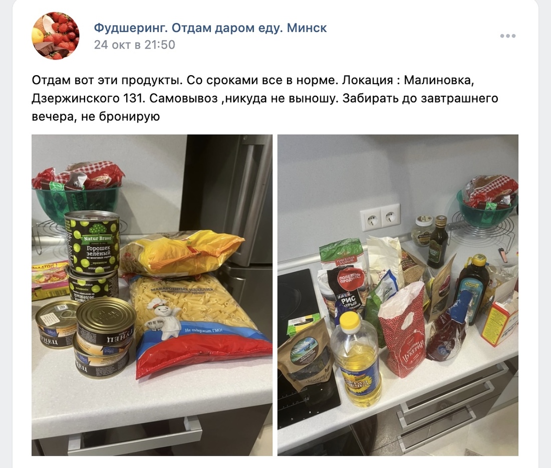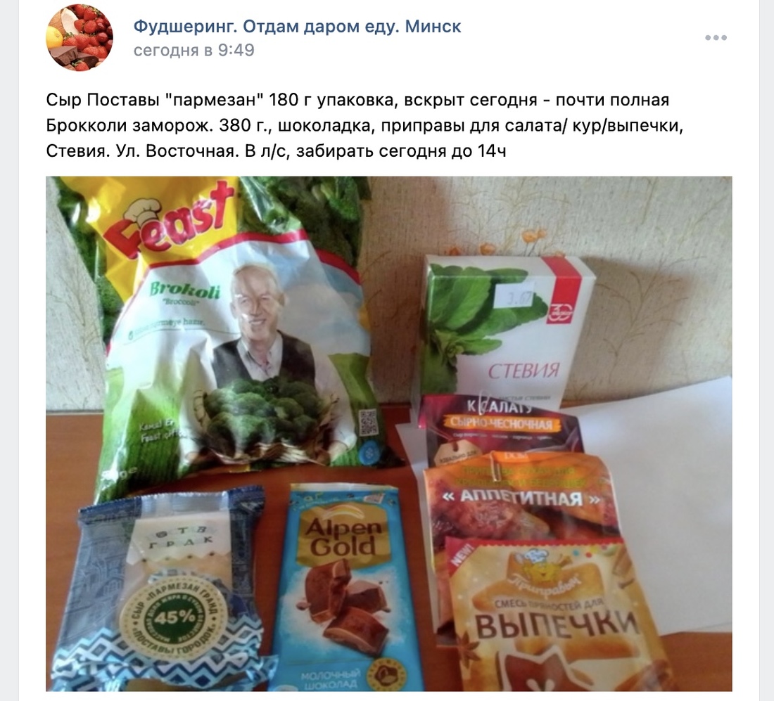 Зато живет и здравствует группа «Фудшеринг. Отдам даром еду. Минск», которая существует в соцсети «ВКонтакте» больше шести лет.