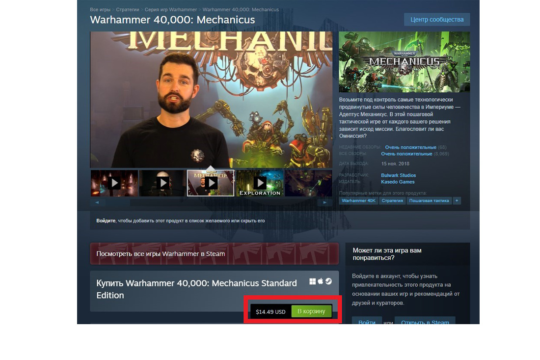 Вот пример: игру Warhammer 40,000: Mechanicus можно купить за $14,49. Но Алексей нашел сайт, где ее предлагают бесплатно. Парень активно мониторит бесплатные раздачи и качает все что можно. Не во все игры он впоследствии играет, зато получает удовольствие от того, что успел их словить.