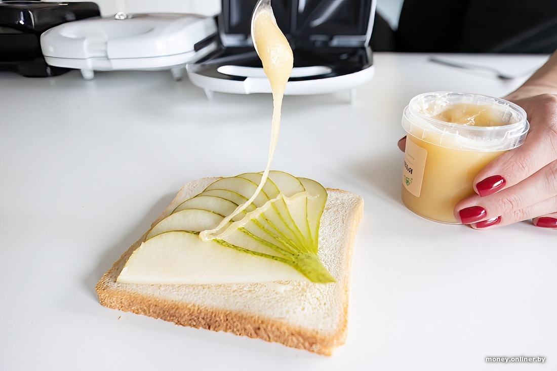 Сладкий ленивый сэндвич с грушей очень напоминает теплую булочку из пекарни, только что приготовленную. Фишка рикотника — еще и в аромате рикотты, который усиливается при нагреве и напоминает запах творожной запеканки. Словно вы завтракаете свежей выпечкой из кофейни.