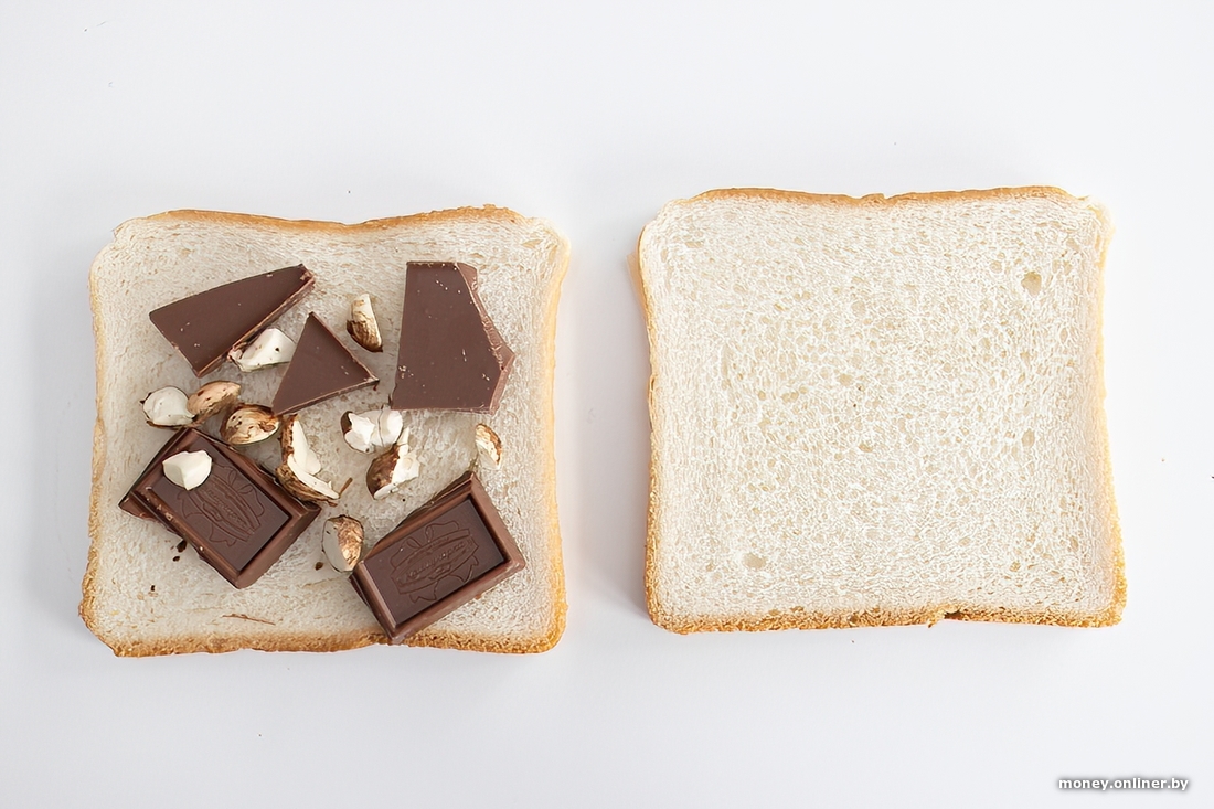 Можно было бы обойтись обычной шоколадной пастой, но у нее есть минус: обычно паста продается в больших или очень больших банках. Если вы захотите запечь в тостовом хлебе шоколадку, то сможете купить маленькую 20-граммовую на один сэндвич.