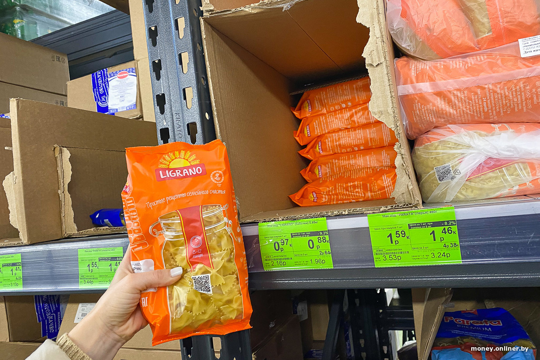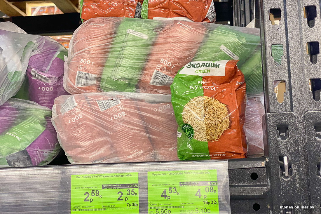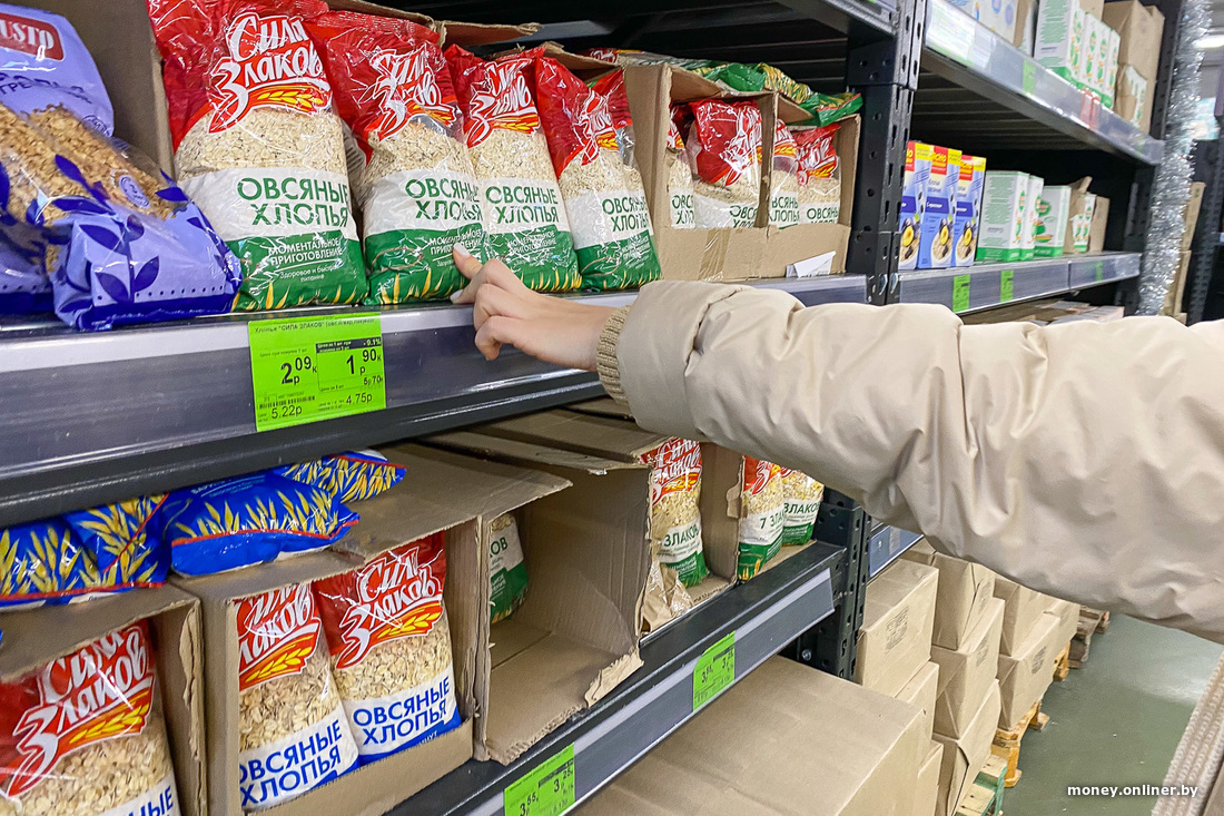 Первым делом ищем дешевый сахар и гречку — это одна из самых надежных инвестиций для белоруса. И замечаем, что в этом отделе много красных ценников с подписью «Лови момент». Консультанты объясняют: на товары по акции изначально идет оптовая цена, даже если вы покупаете всего одну упаковку. Для тех, кто не страдает гигантоманией, это отличная новость.