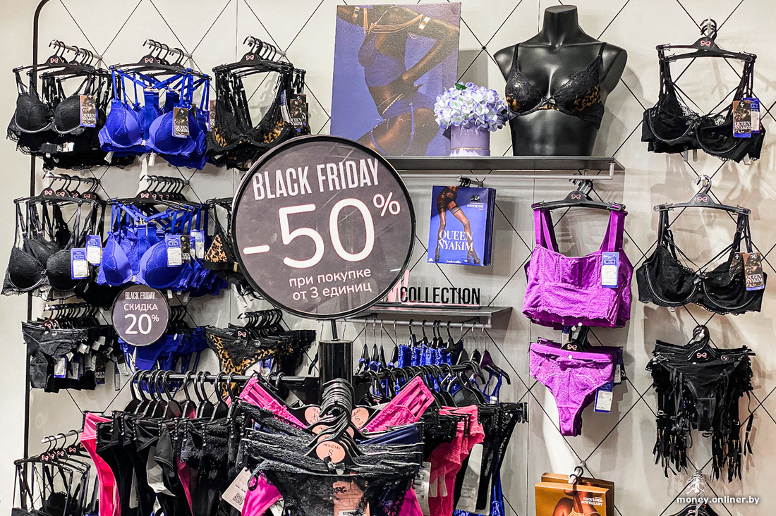 — У нас со вчерашнего дня «черная пятница». Помимо скидки 20%, есть еще красные ценники, там скидка еще больше, доходит до 70%, — заверила нас менеджер Анастасия и даже показала призовые товары. — Вот смотрите: очень выгодно можно купить черные бюсты по 40 рублей и к ним всего за 15 рублей трусики.