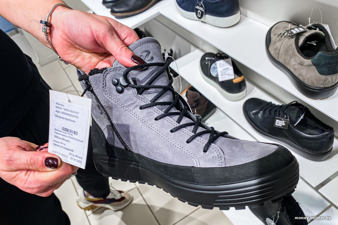 В магазине обуви Ecco, например, акционные товары пометили черными ярлыками. Анонсировалась скидка до 40% от изначальной цены. Мы нашли женские кеды за 205 рублей, утепленные мужские ботинки — за 300 с хвостиком.