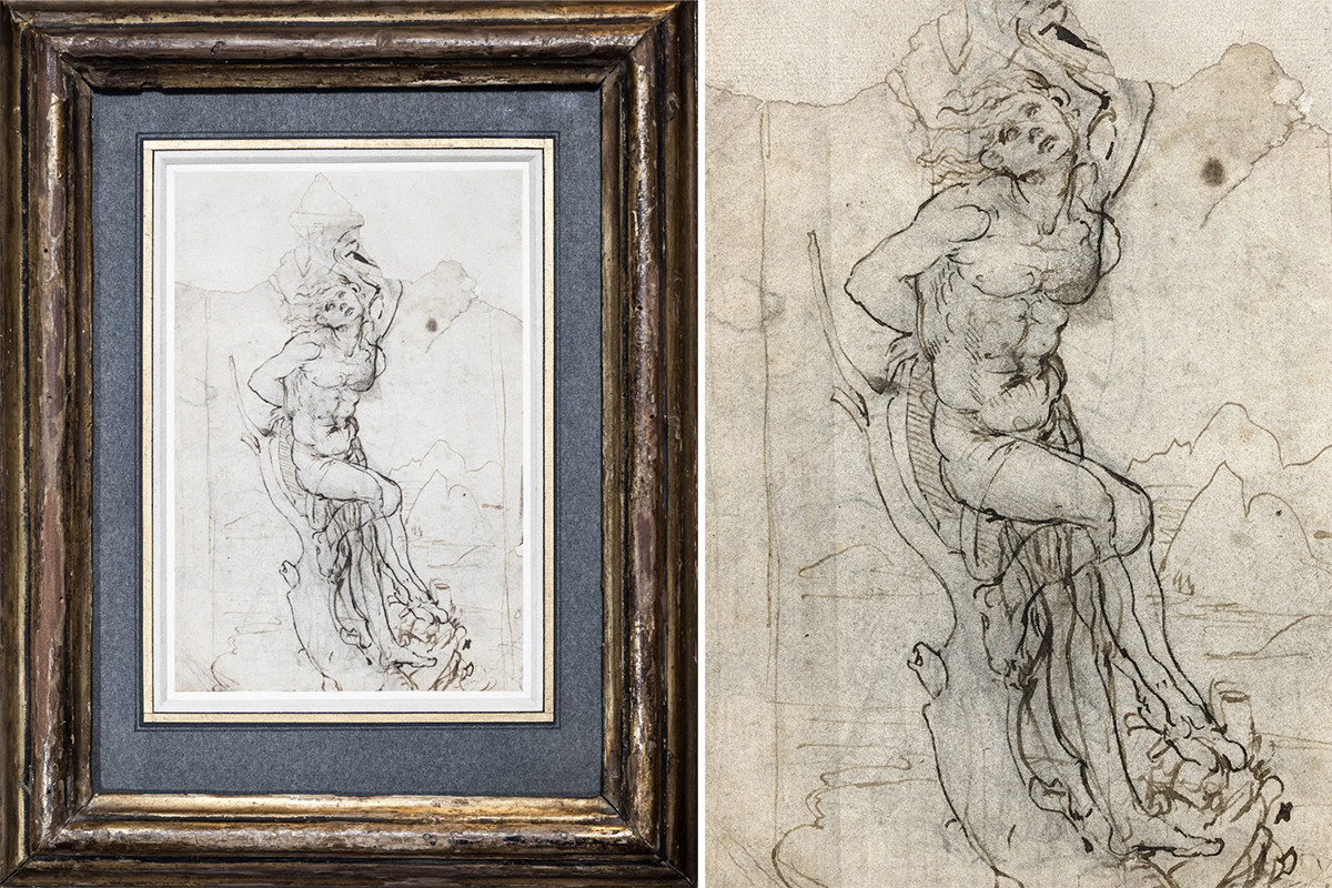 В 2016 году французский врач на пенсии принес в аукционный дом портфель с аккуратно сложенными 14 рисунками без рам. По его словам, рисунки он нашел, разбирая старые документы умершего отца, которые «шли на выброс». Искусством пенсионер, в отличие от отца, не интересовался, потому на всякий случай решил показать листочки оценщикам. Внимание эксперта привлек лишь один небольшой набросок пером и тушью, на котором изображен привязанный к дереву святой Себастьян. Сам лист от времени стал розово-желтого цвета.