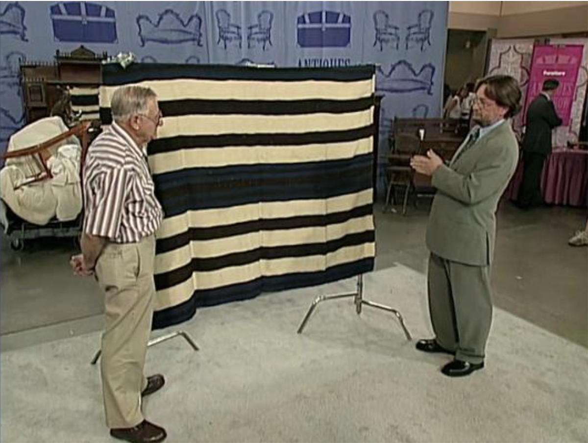 Полосатое одеяло досталось мужчине после смерти бабушки в качестве практически единственного наследства. По его словам, мать с сестрой разворовали все, оставив ему «только книги и эту подстилку для рожавшей бабулиной кошки». В общем, не придумав ничего лучше, мужчина давно положил его в шкаф и забыл. В 2011 году два аукционных дома только посмеялись над его идеей по поводу продажи одеяла. Третий специализировался на искусстве коренных американцев и сразу понял, что это настоящий «бриллиант» — одеяло, вручную сотканное индейцами навахо в 1800-х годах.