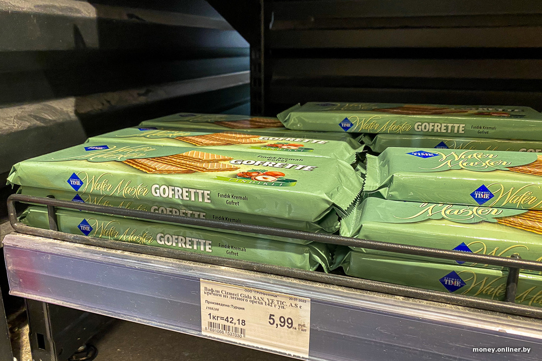 Изначально правительство ограничило 18 укрупненных позиций: кондитерка, колбаса, хлеб, сыры, заморозка и много другого. Заменить все это должны были белорусские производители и представители стран, не попавших под ограничения. Судя по магазинным полкам, одними из тех, кто сориентировался в ситуации, были турецкие производители (или их сориентировали белорусские импортеры). Кроме привычных овощей и фруктов, самые большие турецкие представительства открылись в кондитерке и бакалее.