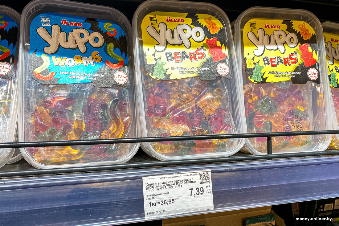 Жевательных мишек делает даже не одна фабрика в Турции. Теперь они есть и на наших полках, но уже почти по 5 рублей за пачку. Haribo не видно, хотя у компании есть турецкое производство.