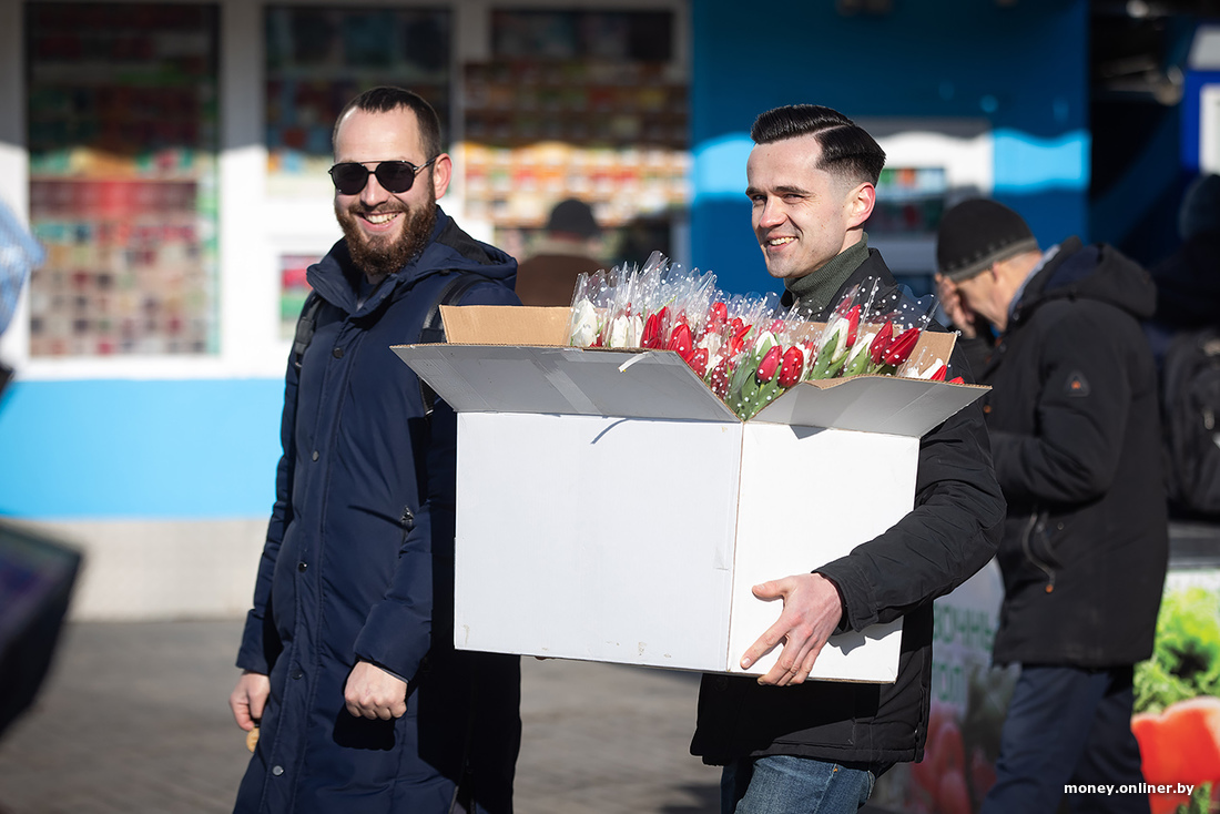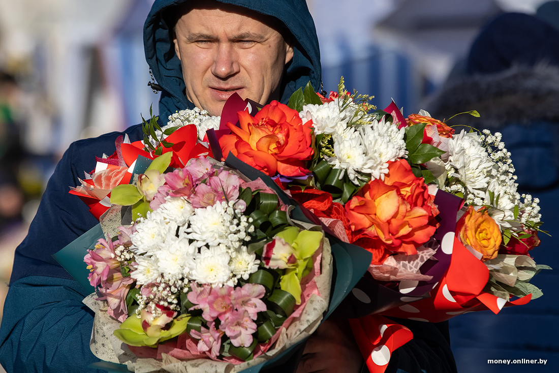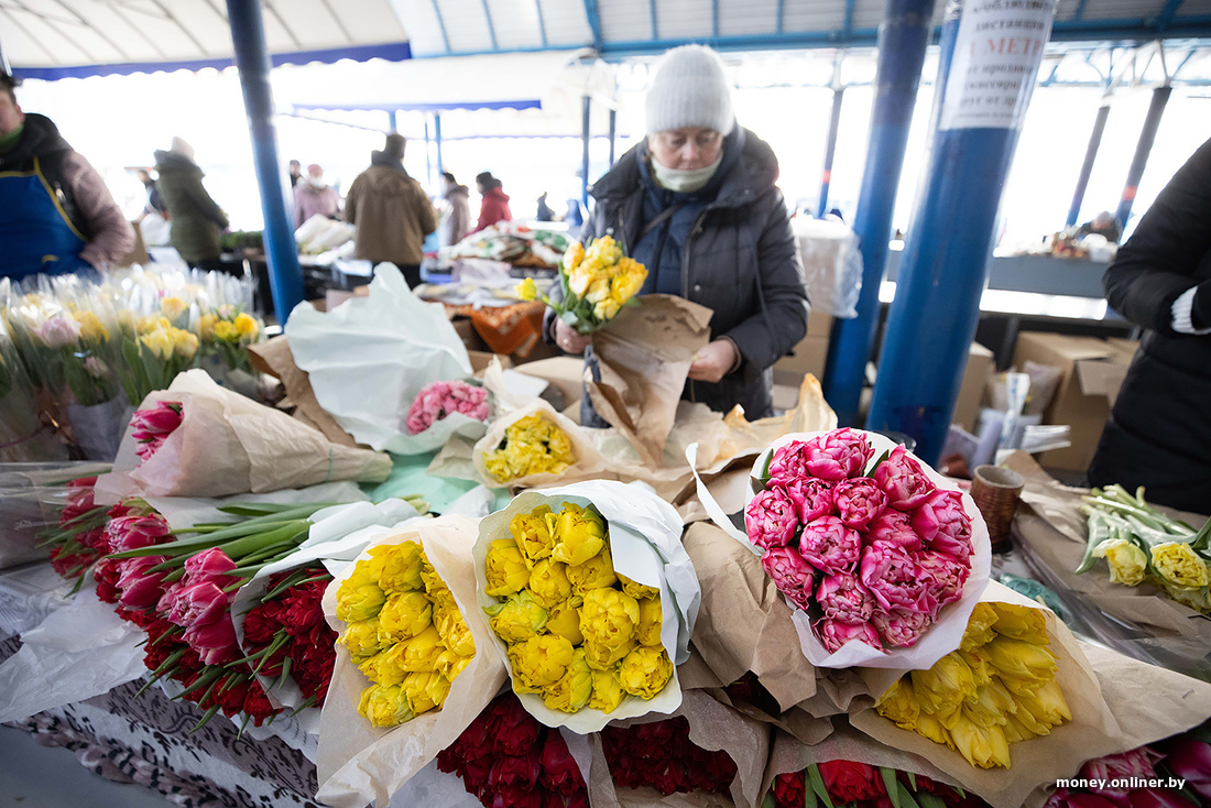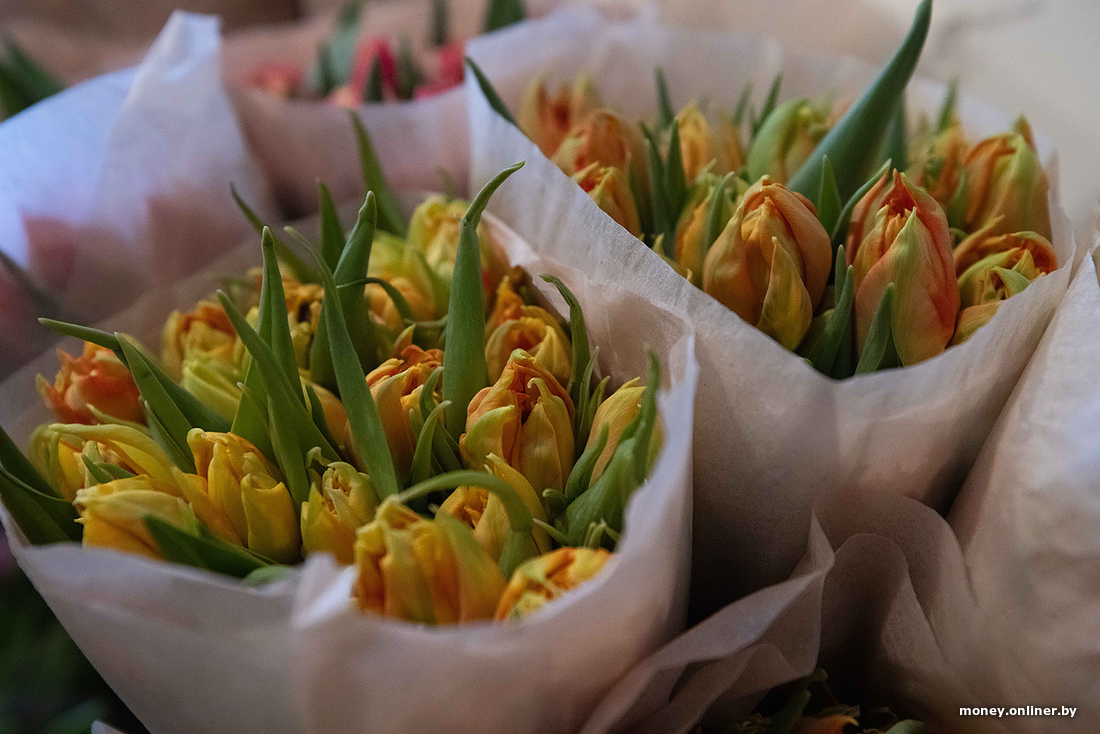 Тюльпанные реки уже на улицах города. На Привокзальной площади цветочная ярмарка начинается у «Ворот Минска» и тянется до подземного перехода у входа в метро. Цена за тюльпан здесь начинается от 2,5 рубля в зависимости от сорта. Цветочные изыски и экзотику не проблема найти в салонах флористики. Посмотрели, какие букеты и почем в этом году предлагают минчанам.