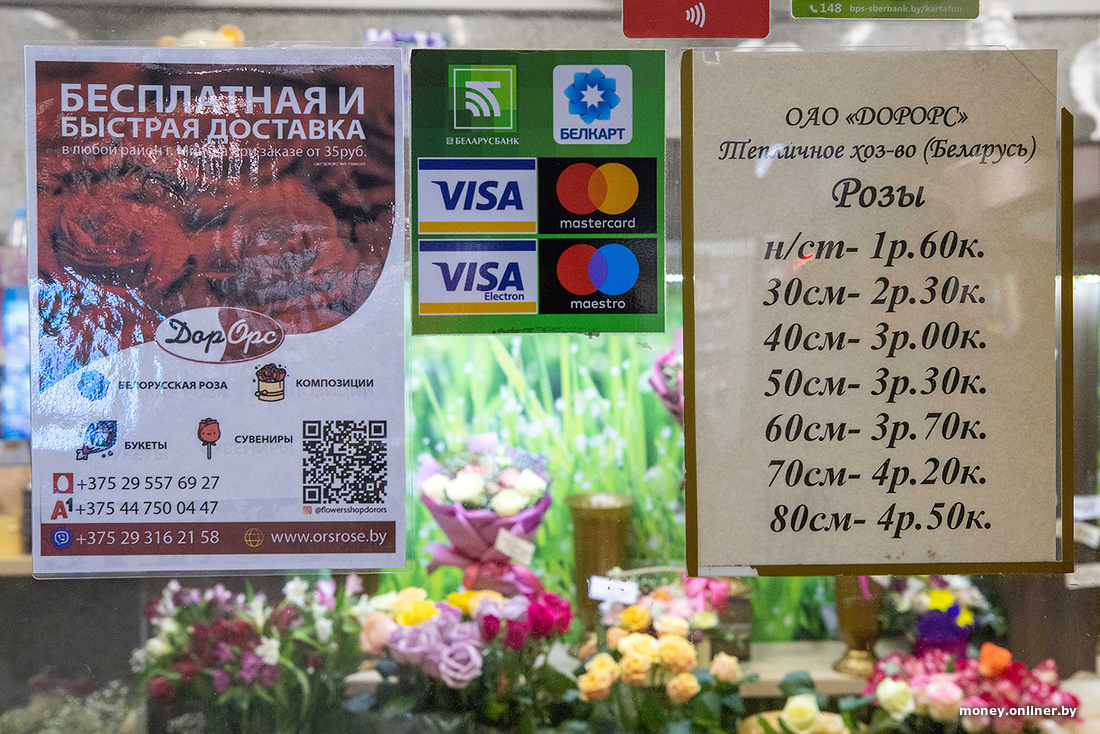 По сравнению с прошлым годом ценник на белорусские розы плюс-минус тот же. Например, в прошлом году скромная роза высотой 30 сантиметров стоила 2,40 рубля, а сейчас — 2,30. Те, что посолиднее, 70 и 80 сантиметров, год назад стоили 4,00 и 4,20 рубля, а теперь — 4,20 и 4,50 соответственно.