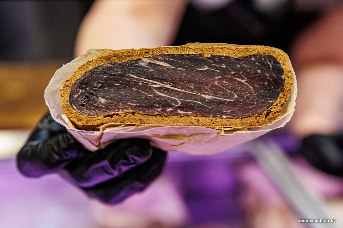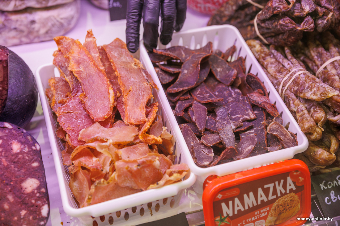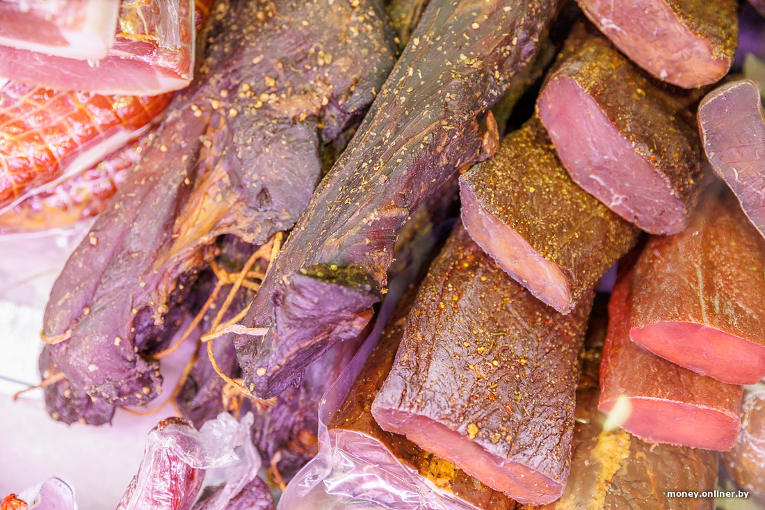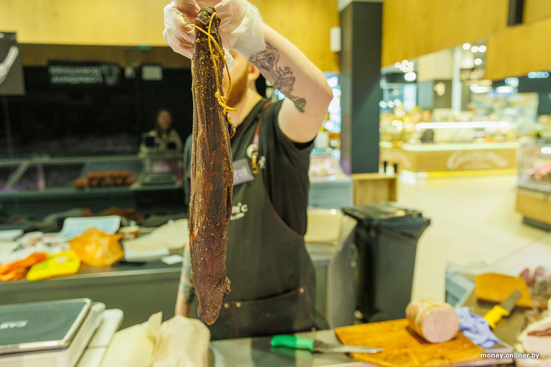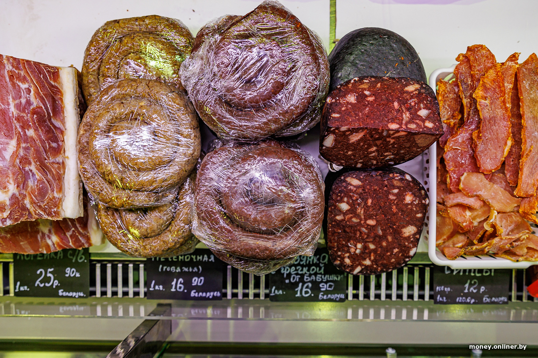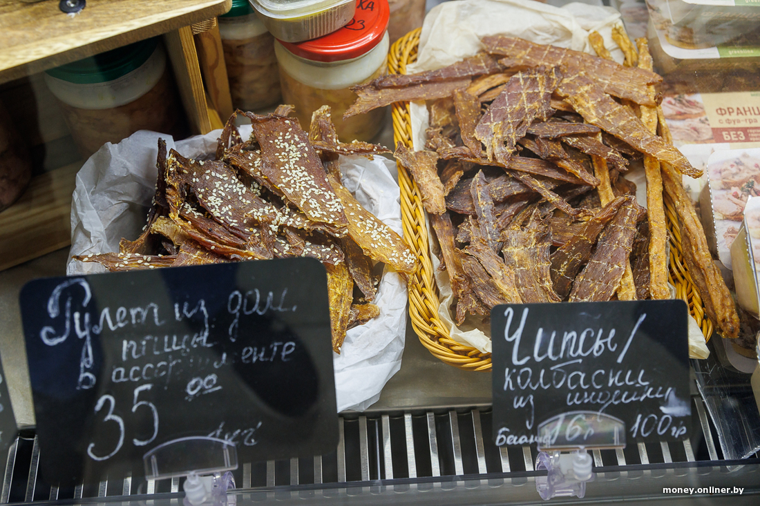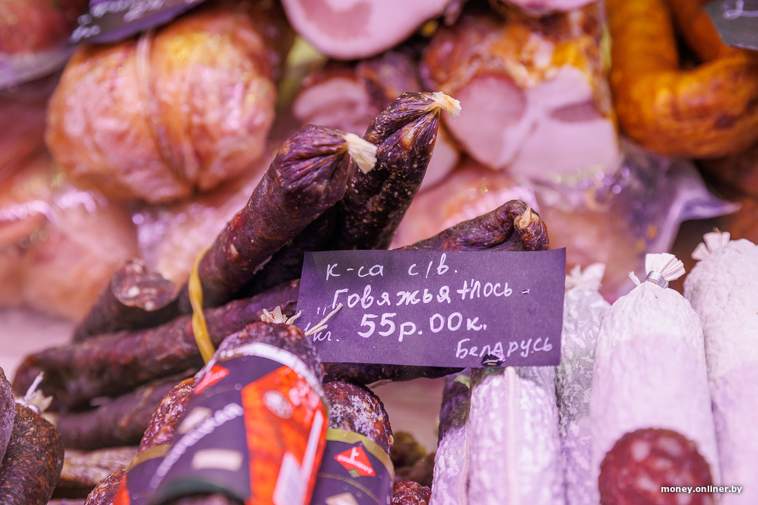 На соседней мясной точке нас угощают колбасой из оленины. Мы спрашиваем, заметно ли продавцам, что покупатели сюда приходят те, которые богаче среднего? «Сильно заметно. Я замечаю: часто люди даже не спрашивают о ценах, просто говорят: „Дайте самое вкусное, что у вас есть“. Бывало, что покупали за раз и на 800 рублей, и еще больше. Как-то покупатель рассказывал, что едет за границу и хочет взять с собой белорусских гостинцев. Взял у меня всего на 1500 рублей».