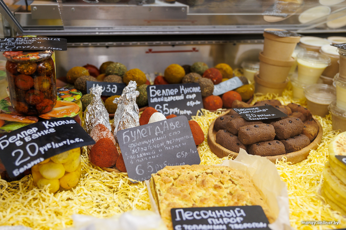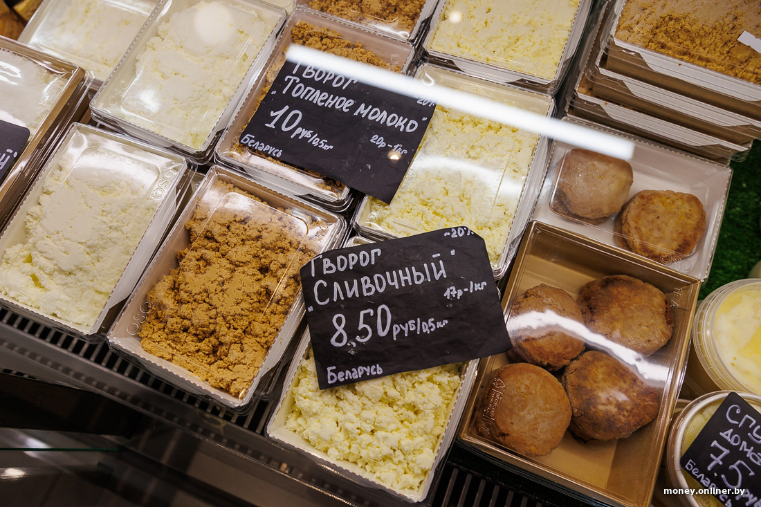 Девушка за прилавком, Диана, продает молочку, которую изготавливают ее родители в деревне: домашнее молоко (в бутылках, как из магазина), сливочное масло, сыры. Хит продаж — творог и адыгейский сыр. В наличии даже сгущенка. Зачем делать сгущенку в стране, где уже есть рогачевская и глубокская? «Да, я не спорю, что рогачевская и глубокская очень вкусные. Некоторым нравится именно домашняя. Мы пастеризуем молоко наших деревенских коров, варим его вместе с сахаром, а потом взбиваем. У нас используется совсем другое молоко», — поясняет Диана.