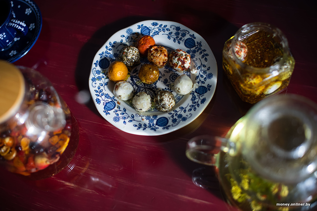 Сейчас она делает мягкие козьи сыры — получаются шарики в разных посыпках, которые хранятся в небольших баночках с маслом. Но цель предпринимательницы на ближайшее время — выпускать антипасти под собственным брендом.