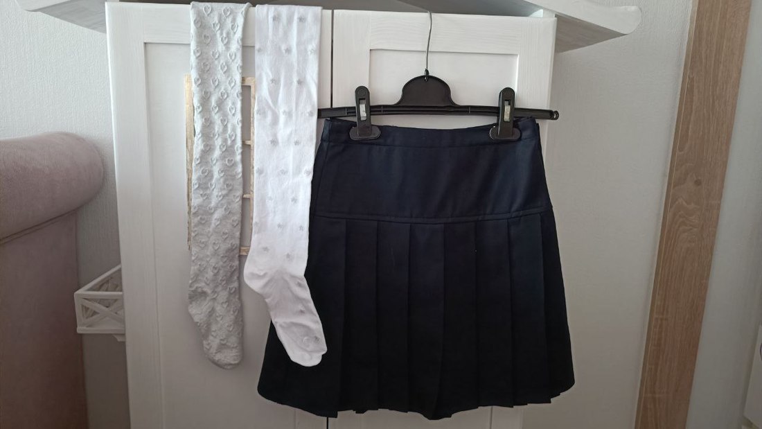 Ребенка полностью собрали к школе за неделю в августе. Юбки, блузки, джемпер купили в Next, брюки в Acoola, жилетка из фирменного магазина «Котофей». За туфлями ездили ТЦ Green City.