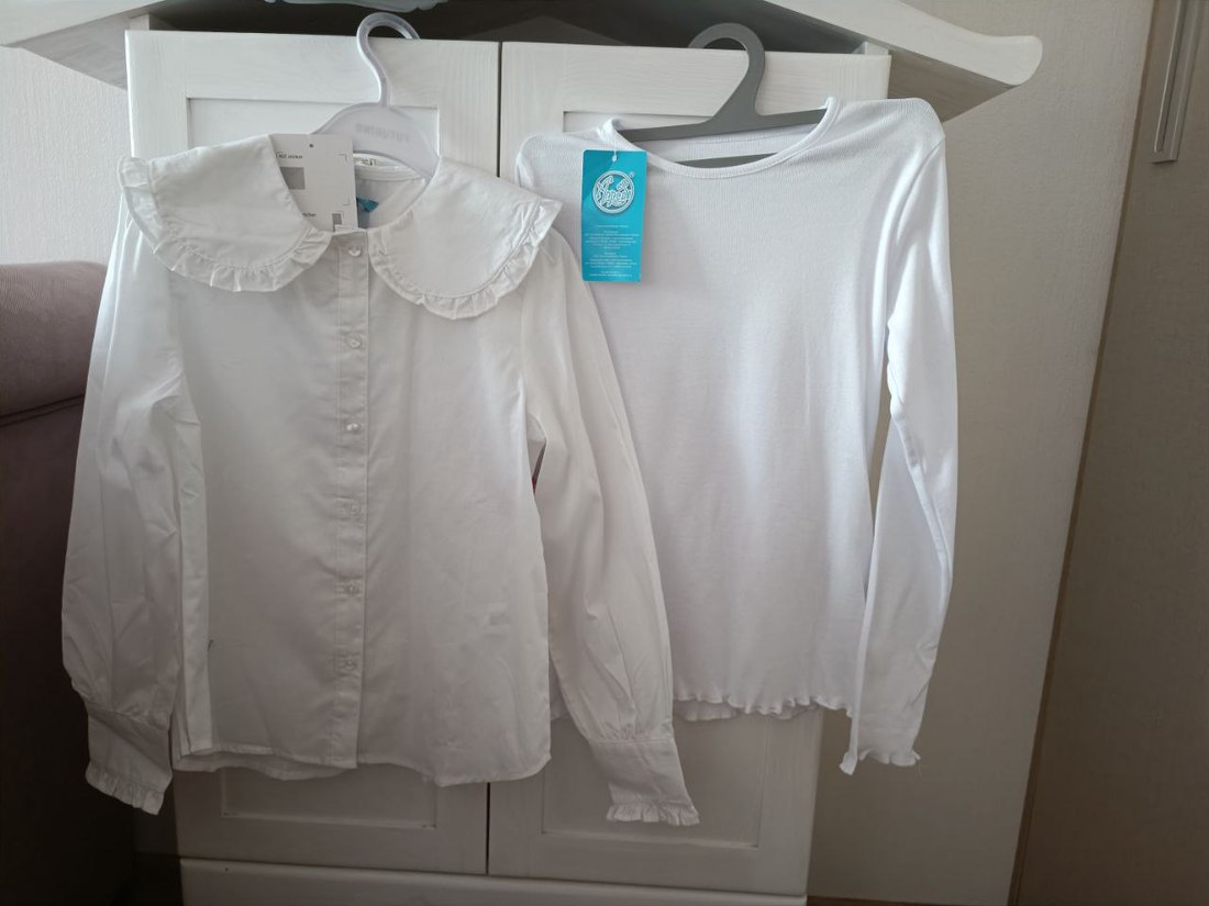 «В нашей школе обязательный элемент — галстук или платок с эмблемой и жилетка на пуговицах синего цвета. Для девочек — юбка в складку. В школе дали ориентир, что примерно нужно купить, а выбор производителя оставили за родителями. Поэтому можно было выбрать по своему бюджету. Мы уже взяли три рубашки и один джемпер разных фирм. Рубашки стоили 27 рублей, 55 рублей и 35 рублей, джемпер — 14 рублей. Итого за „верх“ — 130 рублей. Нам осталось купить жилетку. Юбки продавались в наборе, цена за две — 55 рублей.
