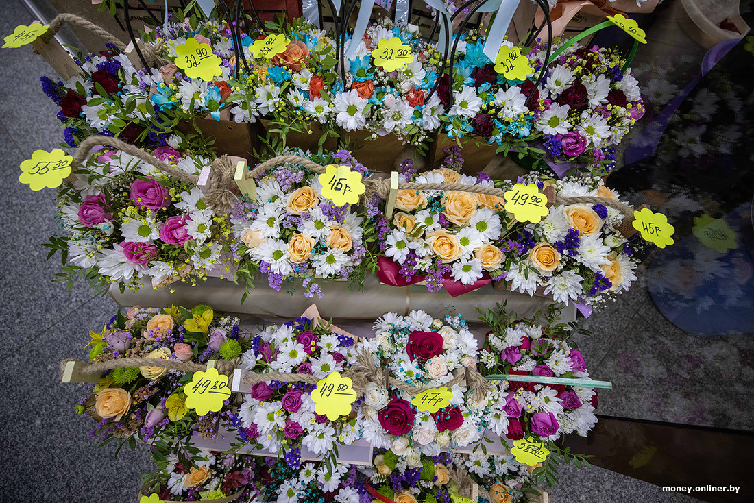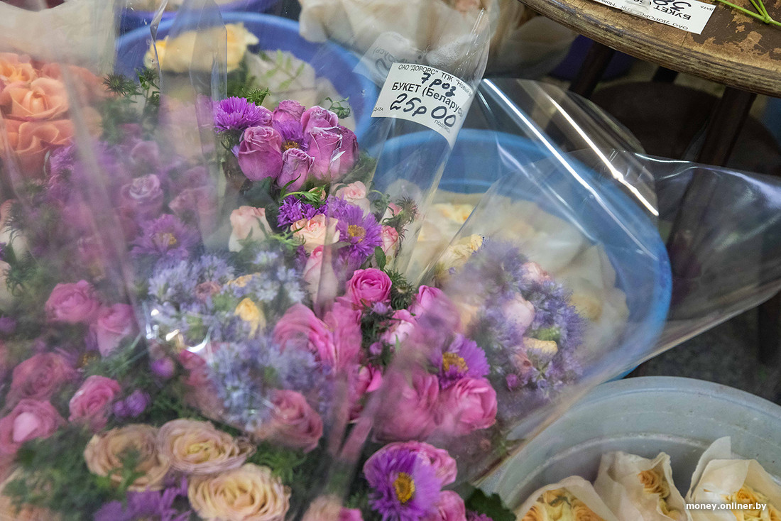 На Комаровке можно найти букеты от 15 до 50 рублей. Большая корзинка с цветами стоит 30 рублей.
