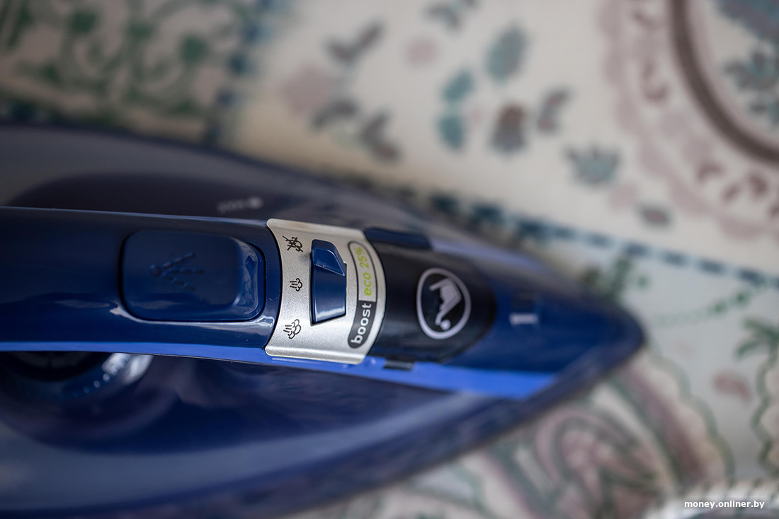 Кстати, это подошва EloxalPlus — она вдвое легче и прочнее стали. Таким утюгом можно гладить пуговицы и даже кнопки. По ткани скользит хорошо.