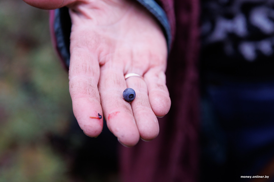 Кто никогда не видел, как растет клюква, может очень долго ходить по болоту и не замечать, что ступает прямо по ягоде. Но на «мокрое» идти не обязательно, она есть и здесь, правда, в очень скудном количестве. Находится поверх кочек, реже в глубине мха. Читерские приборы, такие как комбайны, которыми собирают чернику, тут бесполезны. Кася говорит, что собирает ягоду крышкой от банки, но я так и не понял, что к чему. В основном же клюква — это продукт ручной сборки.
