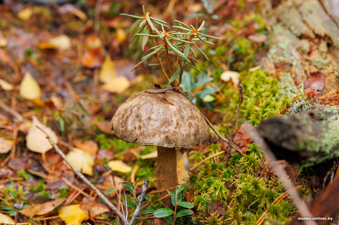 С одной кочки в ведро попадает 15 ягодок. Поэтому наклоняться придется очень часто, за что спина точно спасибо не скажет. Удобнее просто падать на колени, но тогда нужны либо высокие сапоги, либо запасные сухие штаны. Рядом можно поживиться созревшей во второй или третий раз черникой, «пьяной ягодой» — голубикой, которая породнилась с багульником и грибами, которых мы насобирали даже больше, чем ожидали.