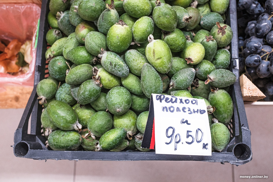 Овощи и фрукты в хорошем состоянии, но есть «косяки»: в глаза бросились «подгулявшие» гранаты (возможно, внутри они бомба) и умоляющий купить себя фейхоа.