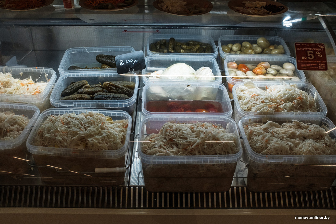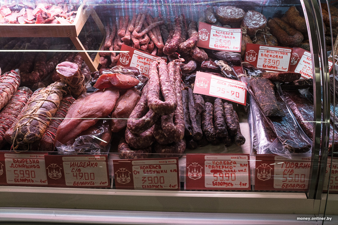 Рынок работает больше месяца, ассортимент особо ничем не выделяется: на полках преобладают сало и другие мясные изделия, овощи, фрукты, орехи, сухофрукты, кондитерские изделия и сыры. Все это мы наверняка найдем на любом базаре столицы. Из «плюшек» — можно оформить бесплатную карту Visa «Сеница» от «БСБ-Банка» и получить скидку до 5%.